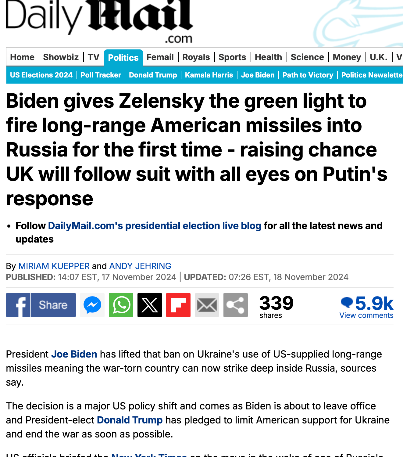 https://www.dailymail.co.uk/news/article-14093445/Biden-gives-Zelensky-green-light-fire-long-range-American-missiles-Russia-time-raising-chance-UK-follow-suit-eyes-Putins-response.html