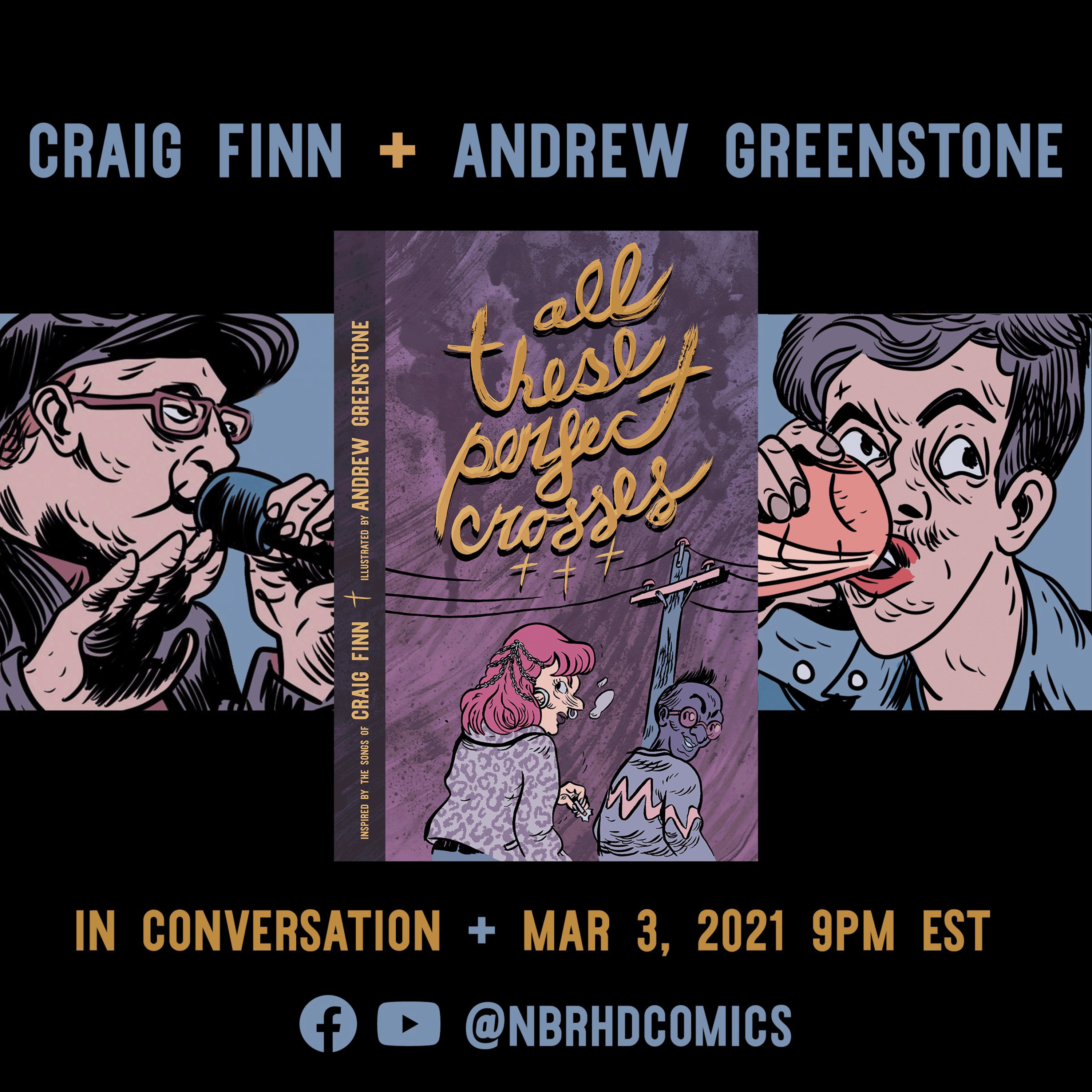 On March 3rd, 2021, we talked with singer/songwriter and frontman of The Hold Steady Craig Finn and illustrator Andrew Greenstone about their new collaboration comic book 'All These Perfect Crosses.' The comic is available right now at http://perfectcrosses.com