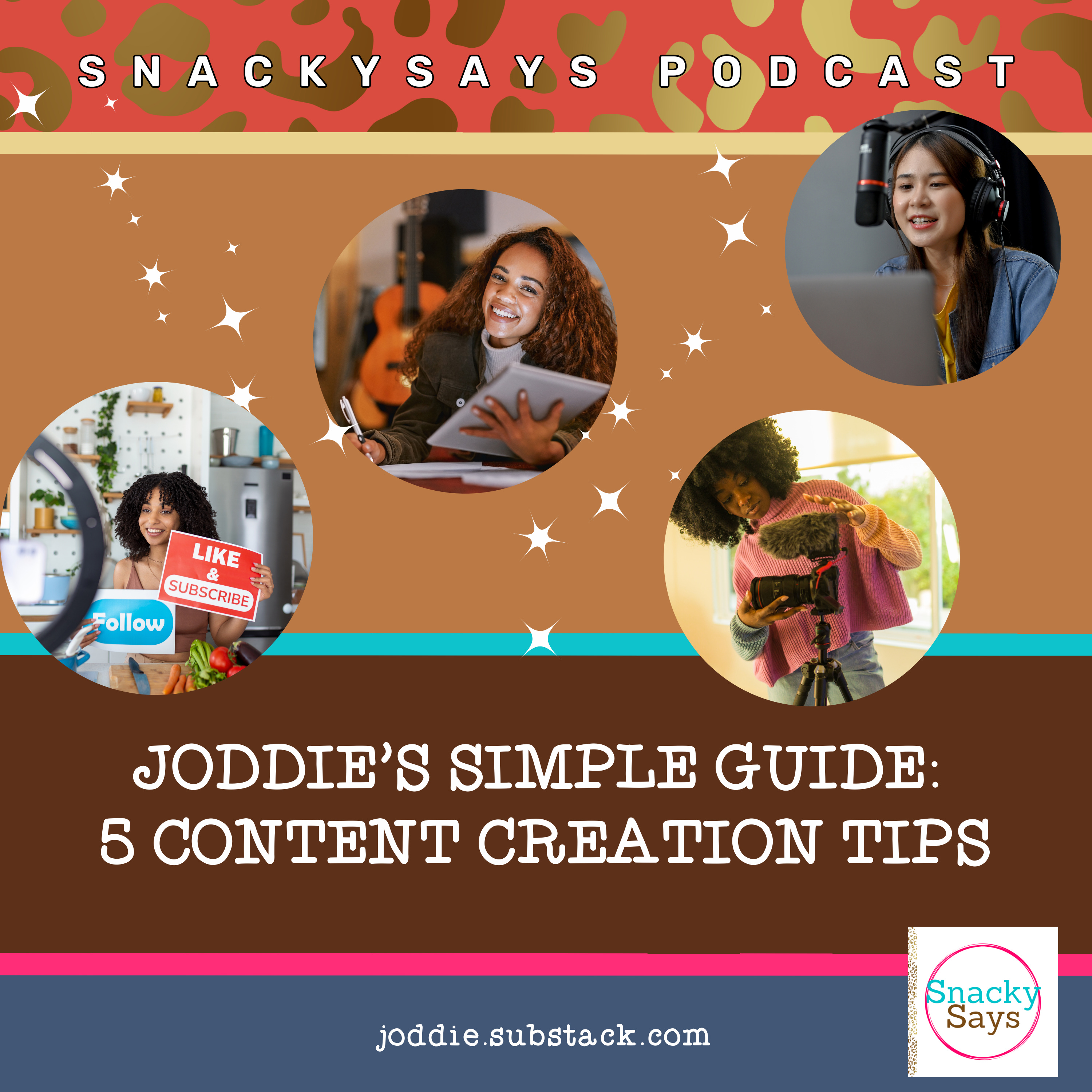 Welcome to the SnackySays podcast featuring Joddie Taylor. In today's episode, we will address a crucial topic for content creators. Drawing from six years of experience, I'll share five essential tips: consistency, setting yourself up for success, and dealing with failure.