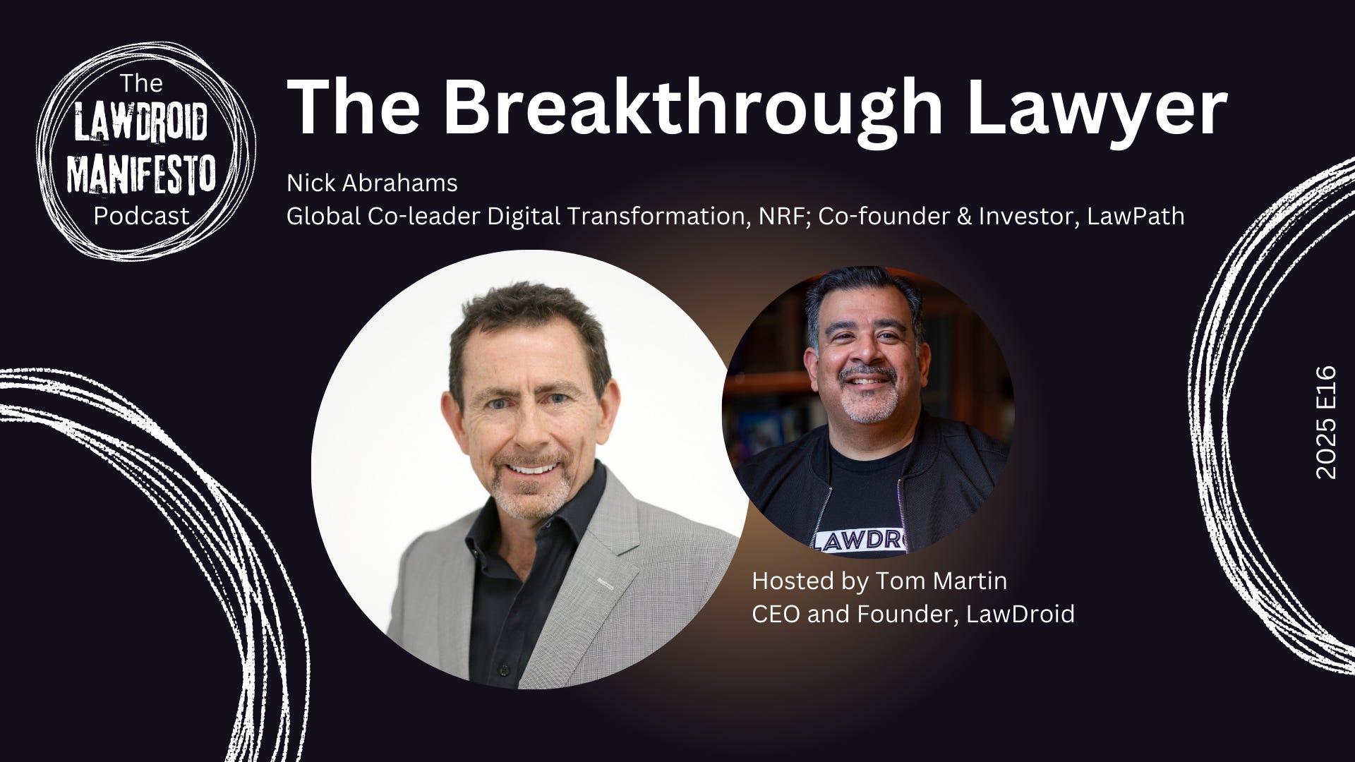 Meet Nick Abrahams, whose journey from Hollywood creative executive (working on ER and The West Wing) to legal innovation leader offers a masterclass in purposeful career evolution. As global co-leader of digital transformation at Norton Rose Fulbright and founder of LawPath (now serving 500,000+ small businesses), Nick shares his practical "pyramid approach" to implementing AI in law firms and why problem-led innovation beats product-focused strategies. Discover how relationships, curiosity, and a genuine desire to help others drove his success across multiple ventures. For exclusive content and conversations with more legal innovators transforming the profession, visit lawdroidmanifesto.com to learn how you can join our community of forward-thinking legal professionals.