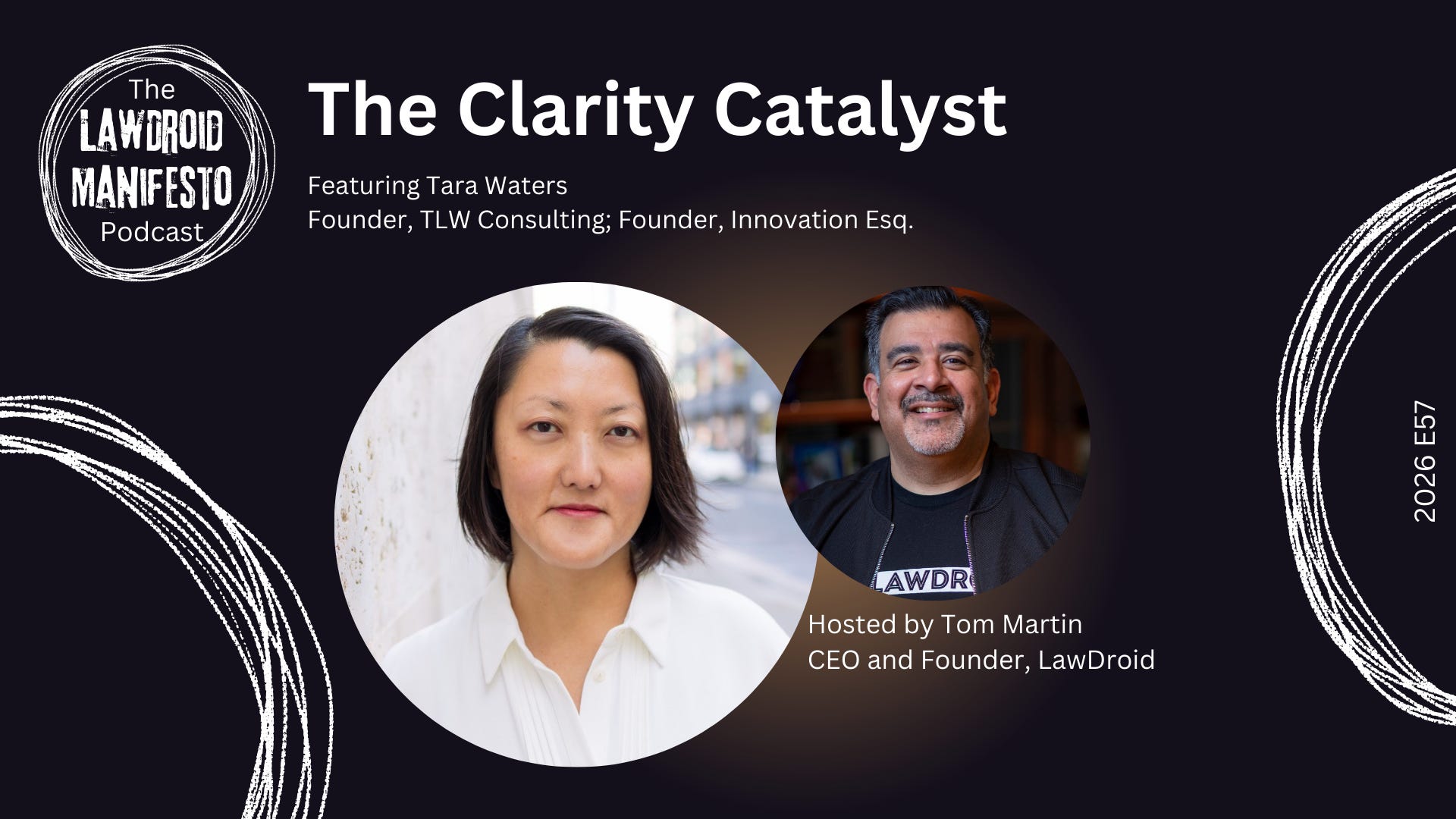 Tara Waters, founder of TLW Consulting and author of Innovation Esquire, shares her journey from dot-com consultancy to becoming a leading legal innovation strategist based in London. In this conversation, Tara reveals how UK law firms are finally viewing AI as genuine opportunity rather than threat, though they're still searching for the right implementation path. As one of the first to implement AI hands-on within law firms, she offers practical insights on navigating transformation while maintaining optimism. Tara discusses her philosophy of holistic living, her identity as an "insufferable learn-it-all," and her purpose-driven approach to helping others find clarity in chaos. Discover actionable strategies for legal innovation at www.lawdroidmanifesto.com