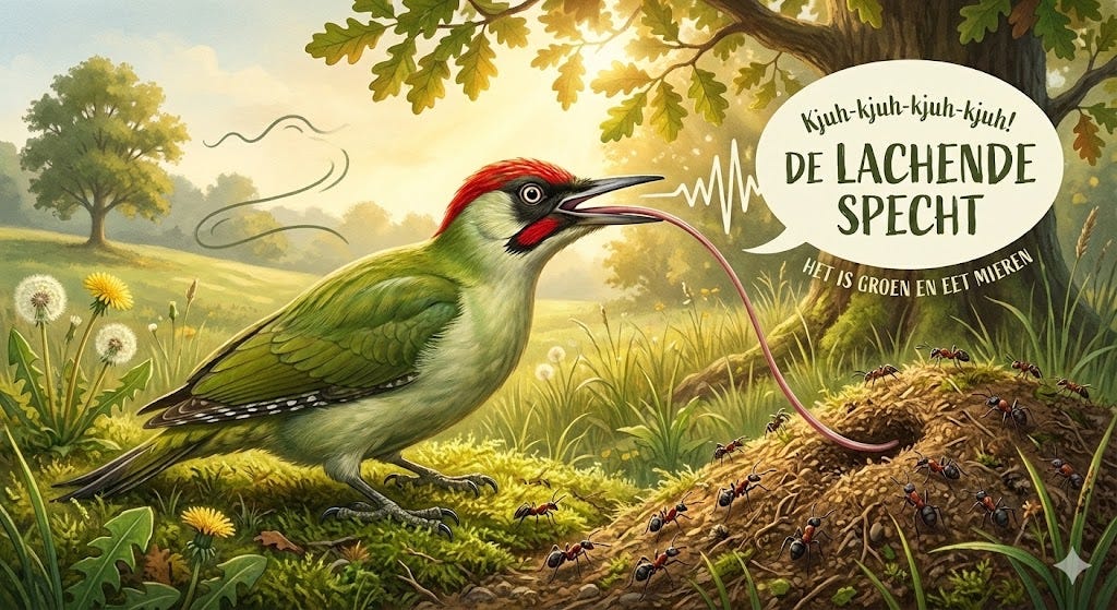 Het is groen en het eet mieren. Een specht?.