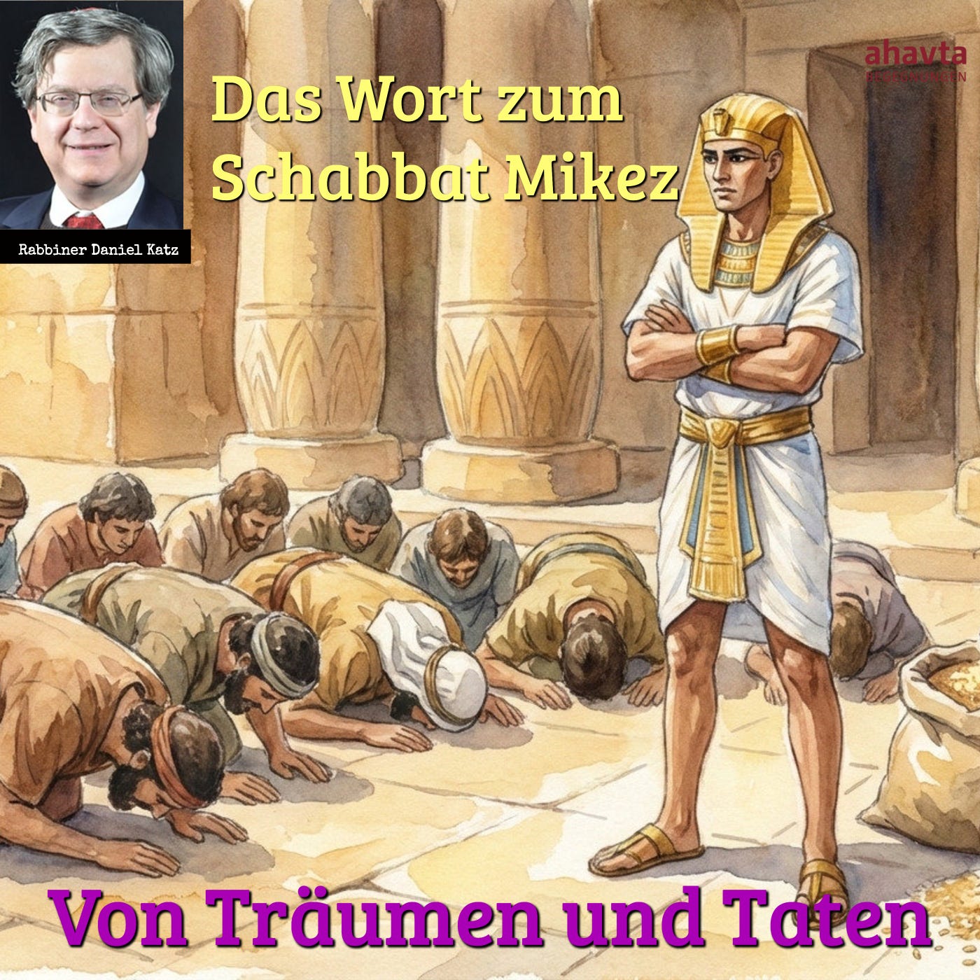 Im „Wort zum Schabbat“ von ahavta – Begegnungen erläutert Rabbiner Dr. Daniel Katz den Tora-Wochenabschnitt Mikez („Nach dem Ende“, 1. Mose 41,1–44,17). Dieser Abschnitt bildet den Mittelteil der Josefsgeschichte und fällt thematisch oft mit dem Chanukka-Fest zusammen. Daniel führt durch die dramatischen Ereignisse, die Josefs Aufstieg zum Herrscher Ägyptens und die erneute Begegnung mit seinen Brüdern schildern, und legt dabei einen besonderen Fokus auf die innerfamiliäre Dynamik sowie das Konzept der Umkehr (Teschuwa).