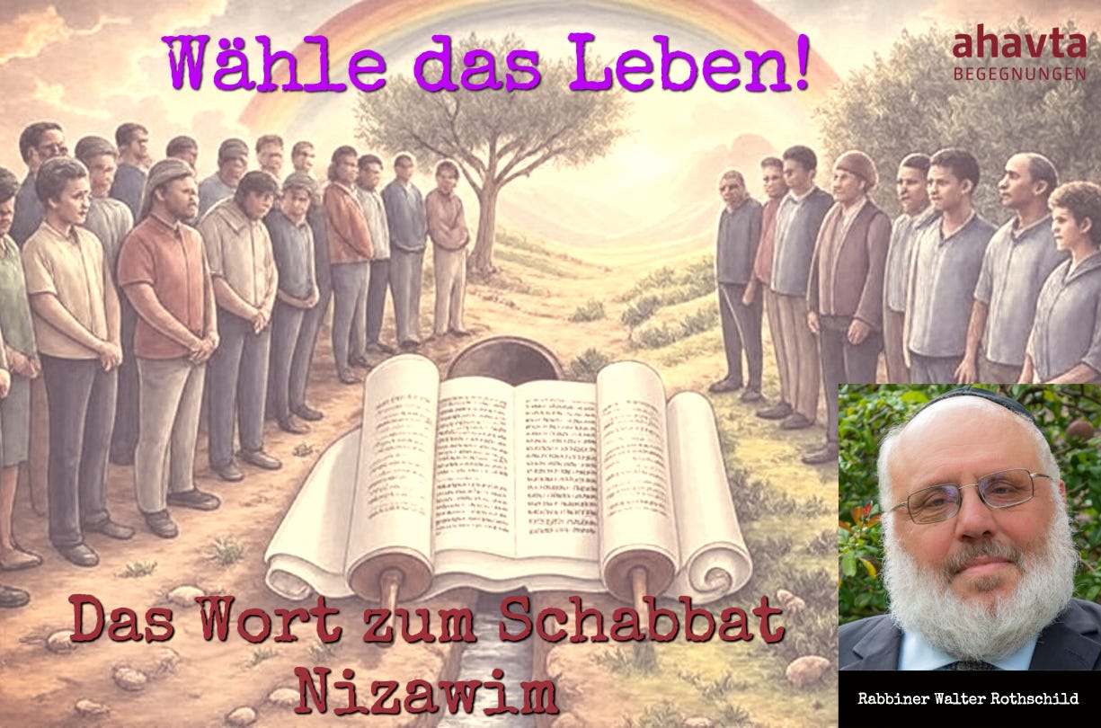 Rabbiner Dr. Walter Rothschild liest Nizawim in 5. Buch Mose 29,9–30,20 als aktuellen Aufruf zur Bundestreue, zur Verantwortungsübernahme und zur bewussten Wahl des Lebens – persönlich, gemeinschaftlich und politisch, gerade angesichts von Krieg, Geiseln und globalen Spannungen.
