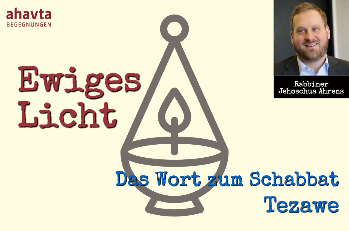 Rabbiner Dr. Jehoschua Ahrens sprach zum Wochenabschnitt Tezawe (2. Buch Mose 27,20–30,10), der zu Beginn die Anweisung behandelt, reines Olivenöl für das ewige Licht (Ner Tamid) im Stiftzelt zu verwenden.