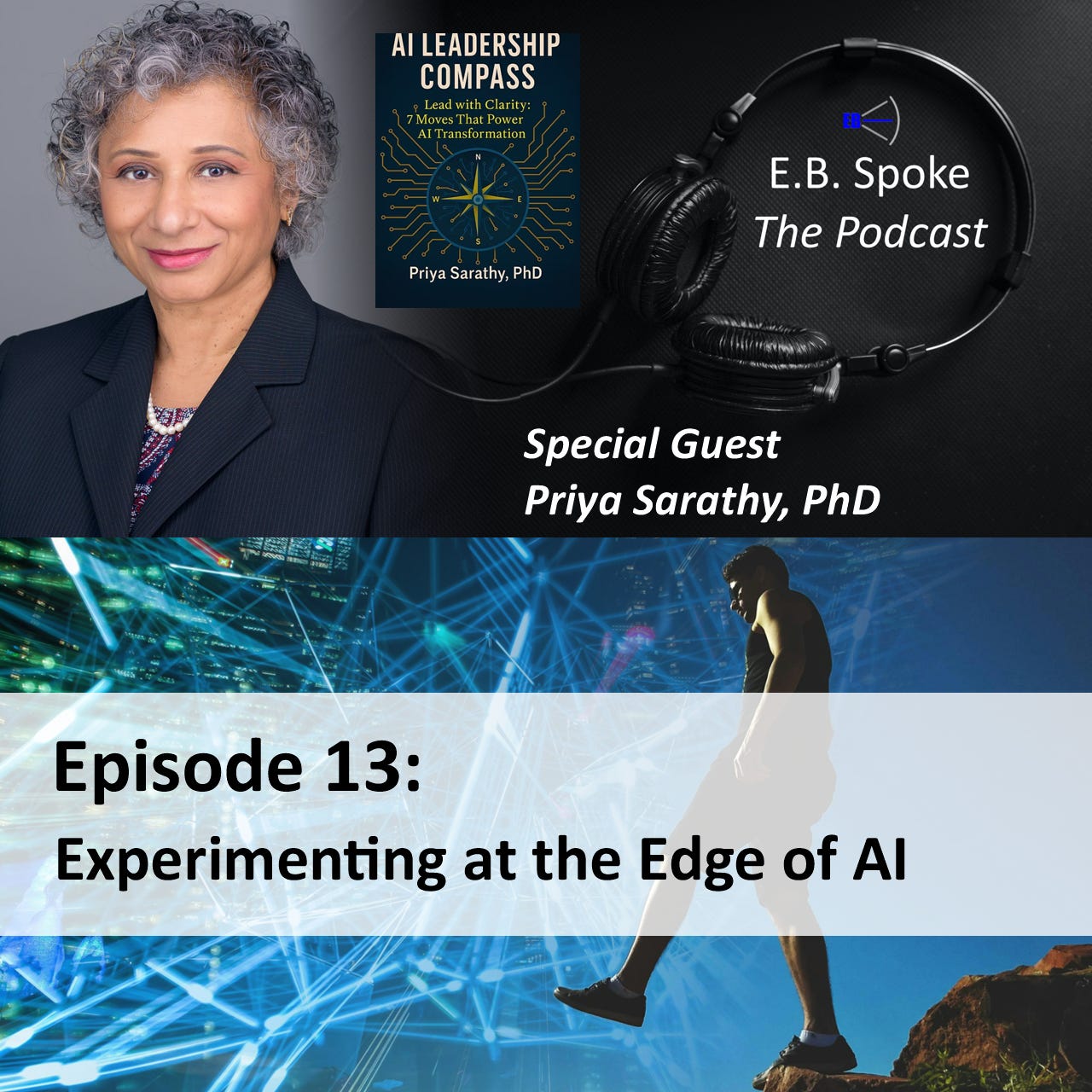 In Episode 13 of E. B. Spoke - The Podcast, host Erik Boemanns interviews Priya Sarathy about her new book, 'AI Leadership Compass - Lead with Clarity: Seven Moves That Power AI Transformation.' They discuss the rapid advancements of large language models (LLMs) and their disruptive potential in the workplace, emphasizing the need for responsible experimentation.