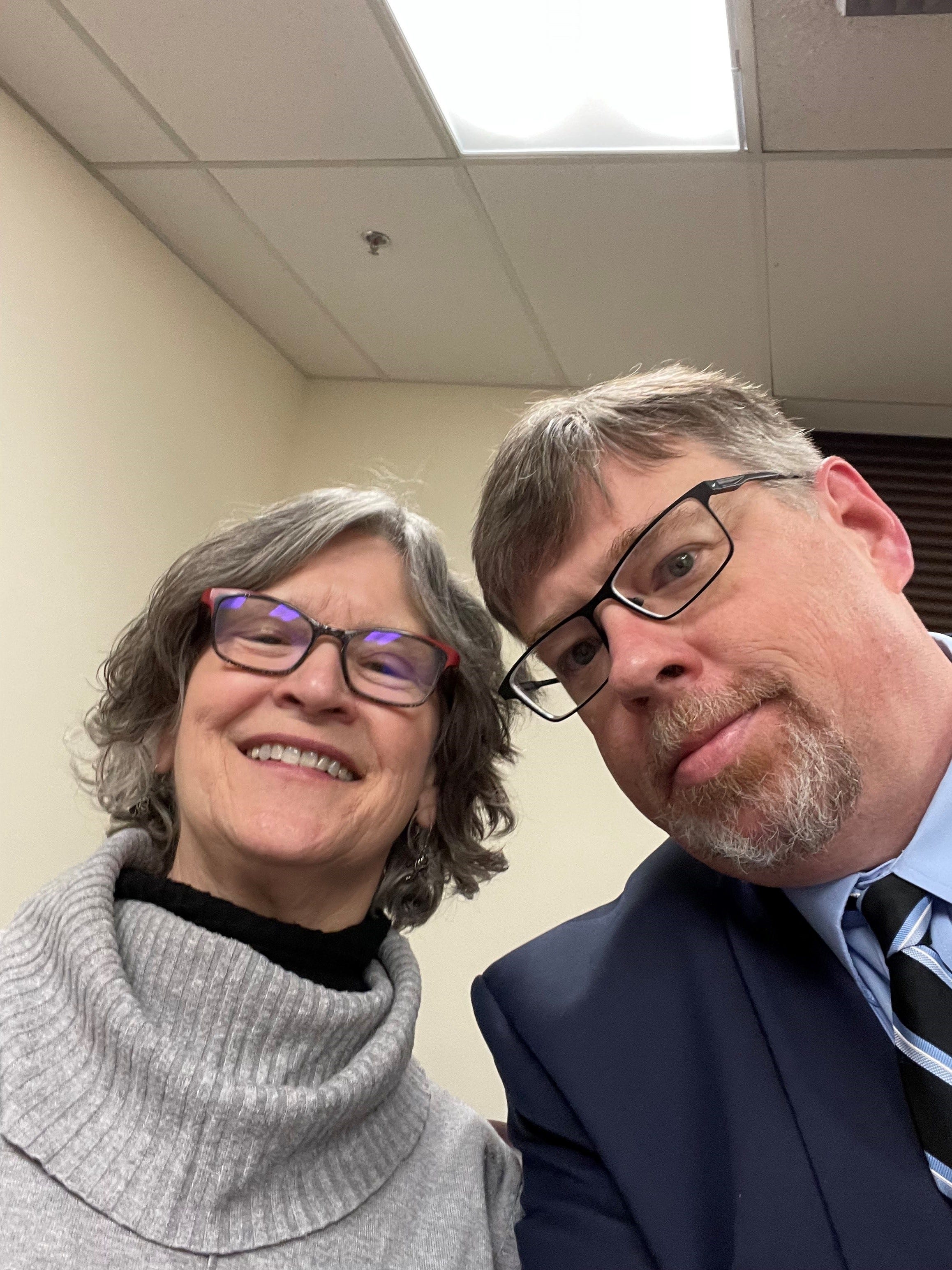 Sen. Löki Gale Tobin discusses Senate Bill 140 and Mike Mason talks to former Alaska Teacher of the Year Marilyn Rosene from Dillingham.