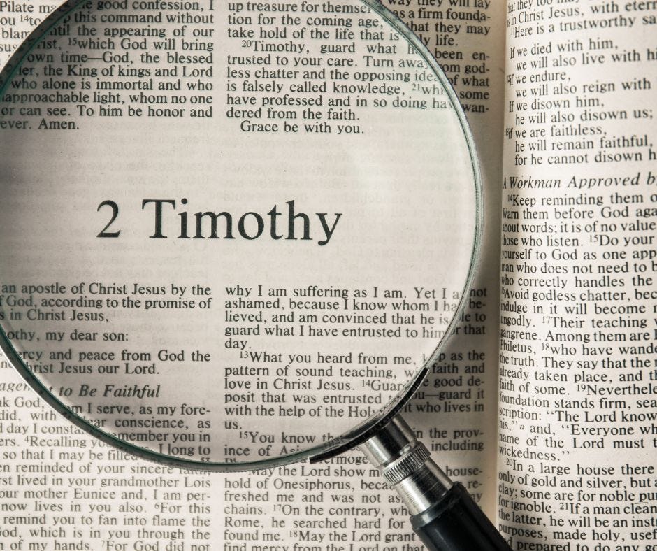 Scripture Reading: 2Tim. 2:1 You therefore, my son, be strong in the grace that is in Christ Jesus. 2 And the things that you have heard from me among many witnesses, commit these to faithful men who will be able to teach others also. 3 You therefore must endure hardship as a good soldier of Jesus Christ. 4 No one engaged in warfare entangles himself with the affairs of [this] life, that he may please him who enlisted him as a soldier. 5 And also if anyone competes in athletics, he is not crowned unless he competes according to the rules. 6 The hardworking farmer must be first to partake of the crops. 7 Consider what I say, and may the Lord give you understanding in all things. 8 Remember that Jesus Christ, of the seed of David, was raised from the dead according to my gospel, 9 for which I suffer trouble as an evildoer, [even] to the point of chains; but the word of God is not chained. 10 Therefore I endure all things for the sake of the elect, that they also may obtain the salvation which is in Christ Jesus with eternal glory.11 [This is] a faithful saying: For if we died with [Him], We shall also live with [Him]. 12 If we endure, We shall also reign with [Him]. If we deny [Him], He also will deny us. 13 If we are faithless, He remains faithful; He cannot deny Himself. 14 Remind [them] of these things, charging [them] before the Lord not to strive about words to no profit, to the ruin of the hearers. 15 Be diligent to present yourself approved to God, a worker who does not need to be ashamed, rightly dividing the word of truth. 16 But shun profane [and] idle babblings, for they will increase to more ungodliness. 17 And their message will spread like cancer. Hymenaeus and Philetus are of this sort, 18 who have strayed concerning the truth, saying that the resurrection is already past; and they overthrow the faith of some.19 Nevertheless the solid foundation of God stands, having this seal: "The Lord knows those who are His," and, "Let everyone who names the name of Christ depart from iniquity." 20 But in a great house there are not only vessels of gold and silver, but also of wood and clay, some for honor and some for dishonor. 21 Therefore if anyone cleanses himself from the latter, he will be a vessel for honor, sanctified and useful for the Master, prepared for every good work. 22 Flee also youthful lusts; but pursue righteousness, faith, love, peace with those who call on the Lord out of a pure heart. 23 But avoid foolish and ignorant disputes, knowing that they generate strife. 24 And a servant of the Lord must not quarrel but be gentle to all, able to teach, patient, 25 in humility correcting those who are in opposition, if God perhaps will grant them repentance, so that they may know the truth, 26 and [that] they may come to their senses [and escape] the snare of the devil, having been taken captive by him to [do] his will.