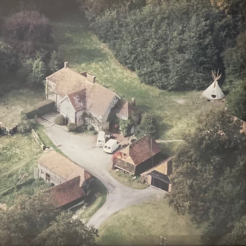 Let me set the scene. Me and Angel man. A carpenter who looked like Jesus. A pianist, blonde, many rings, she played the Michael Nyman tune from The Piano almost constantly. A man of the woods and his Wiccan wife and her daughter. An ex-trucker turned megalithic giant. A soft-spoken road protester who’d lived up a tree. A long, thin, angular beanpole with glasses. An old man and white-haired woman, both of them rounded like the bender they built in the wood. These were the first members of the commune. God did people go on about how great communal living would be. That’s why we did it. That’s why when I looked out on the land, I said, Well let’s find out then, shall we. A pound a week, everyone welcome, an open-door policy, communal use of the washing machine and bathrooms, you could pitch up and pitch anywhere, the house soon full, tipis, benders, yurts sprang to life in the woods and fields. Converted horseboxes found flat ground outside the old metal barn down the drive where a mechanic had been turfed out. A member of the firm behind all this, my father’s estate, had arrived looking worried in a suit, clearly instructed to do my bidding, no questions asked, and he did; we wanted the barn for ourselves. It was big enough for workshops and later a stage and trapeze. The road protester moved his coffin onto a shelf in the office. The megalithic giant announced the HQ for Shamanic Studies. The Jesus carpenter hammered and plane-sawed and got dust in his beard. A didgeridoo maker portioned off another corner, soon discovering that giant hogweed was no replacement for eucalyptus. Meetings once a week, mandatory, a talking stick passing from hand to hand around the kitchen table. A lot of tea. A lot of spliff. In the first month we sent out a call for extra help, gave everyone a sapling and an ecstasy. We planted two thousand trees that day. Word spread, the commune grew and this wasn’t the wildness of Dartmoor or some remote hilltop in the highlands where no one could see, it was Surrey, the Home Counties, not two hours from London where careful women clipped their roses and nervous men played golf.