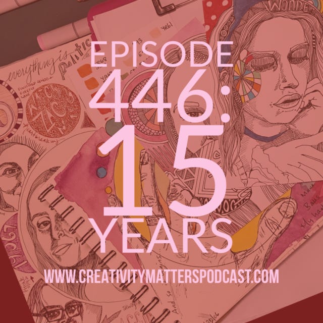 Episode 446 of the Creativity Matters Podcast: not sure it's a party exactly, but it IS a 15 year podcast anniversary. Get full access to Illustrated Life at illustratedlife.substack.com/subscribe