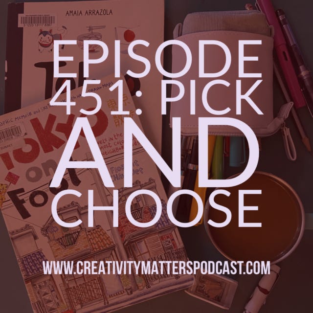 Episode 451 of the Creativity Matters Podcast: thoughts on how we pick and choose and what happens when we just "pick one" for our illustrated journals and sketchbooks + a pair of illustrated travel journals about Japan.