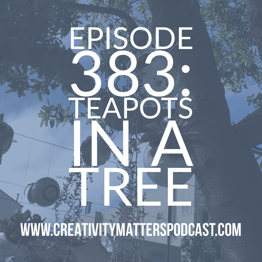 Episode 383 of the Creativity Matters Podcast: mindfulness, drawing in the midst of anxiety, whimsy, and teapots in a tree. Get full access to Illustrated Life at illustratedlife.substack.com/subscribe