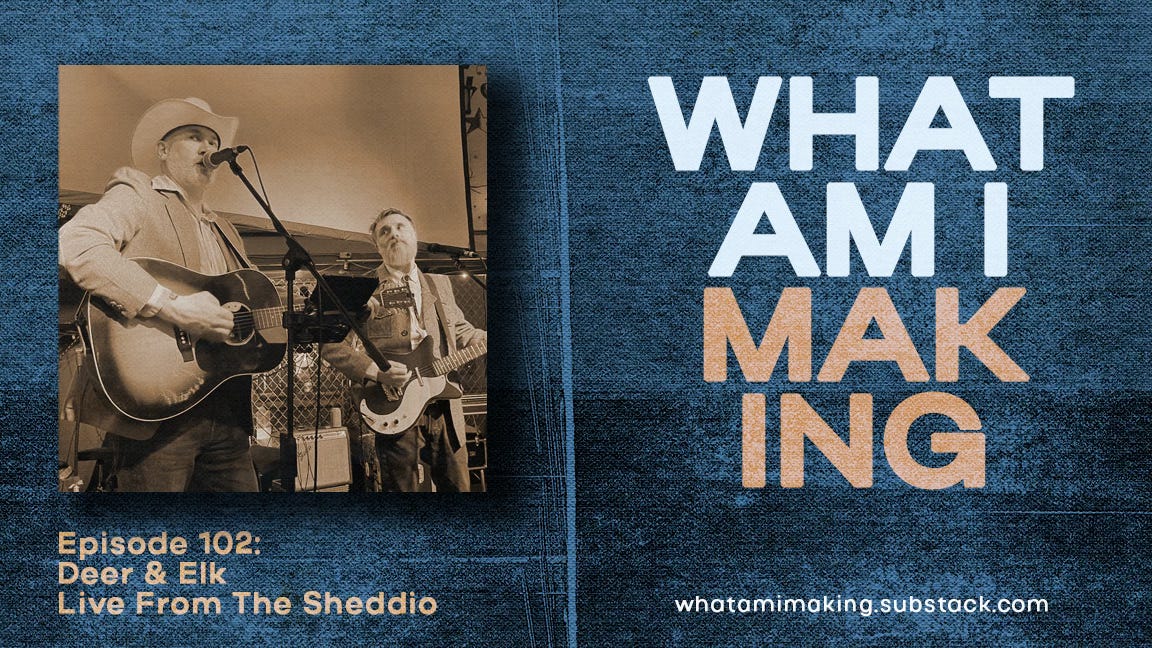 The bulk of this week’s pod will feature Deer & Elk playing live from the Sheddio. I’ll pop in during the middle of their performance for some conversation with our guests, but this week will be music heavy. So, grab a beverage, find a comfy chair, and settle in for this very special, somewhat unusual, episode of the show - live with my friends in Deer & Elk.