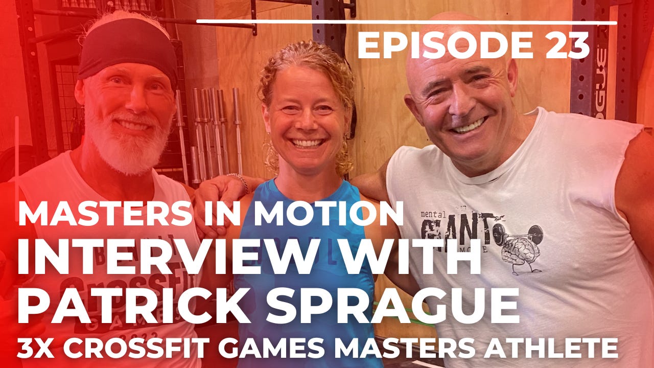 Welcome to Episode 23 of the Masters in Motion Podcast! We are thrilled to have Patrick Sprague, a 3x Masters CrossFit Games athlete, join us this week. Patrick was part of the first wave of Masters Athletes at the CrossFit Games in 2011 and has made it back to the Games twice since then.