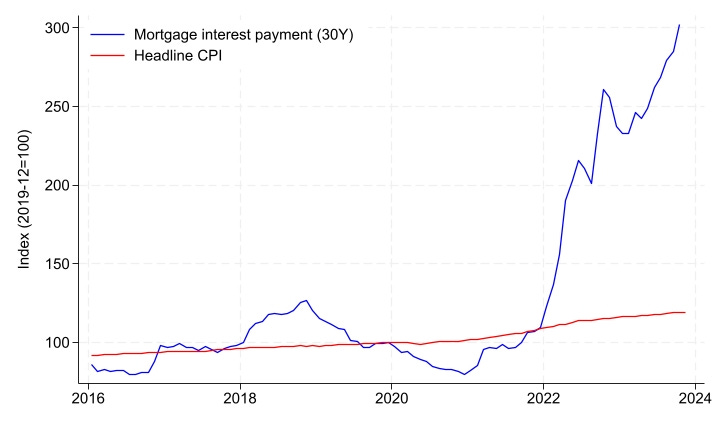 “We then develop alternative CPI measures that explicitly incorporate the cost of money. The CPI does not only exclude mortgage costs, but also personal interest payments, which increased by more than 50 percent in 2023.”