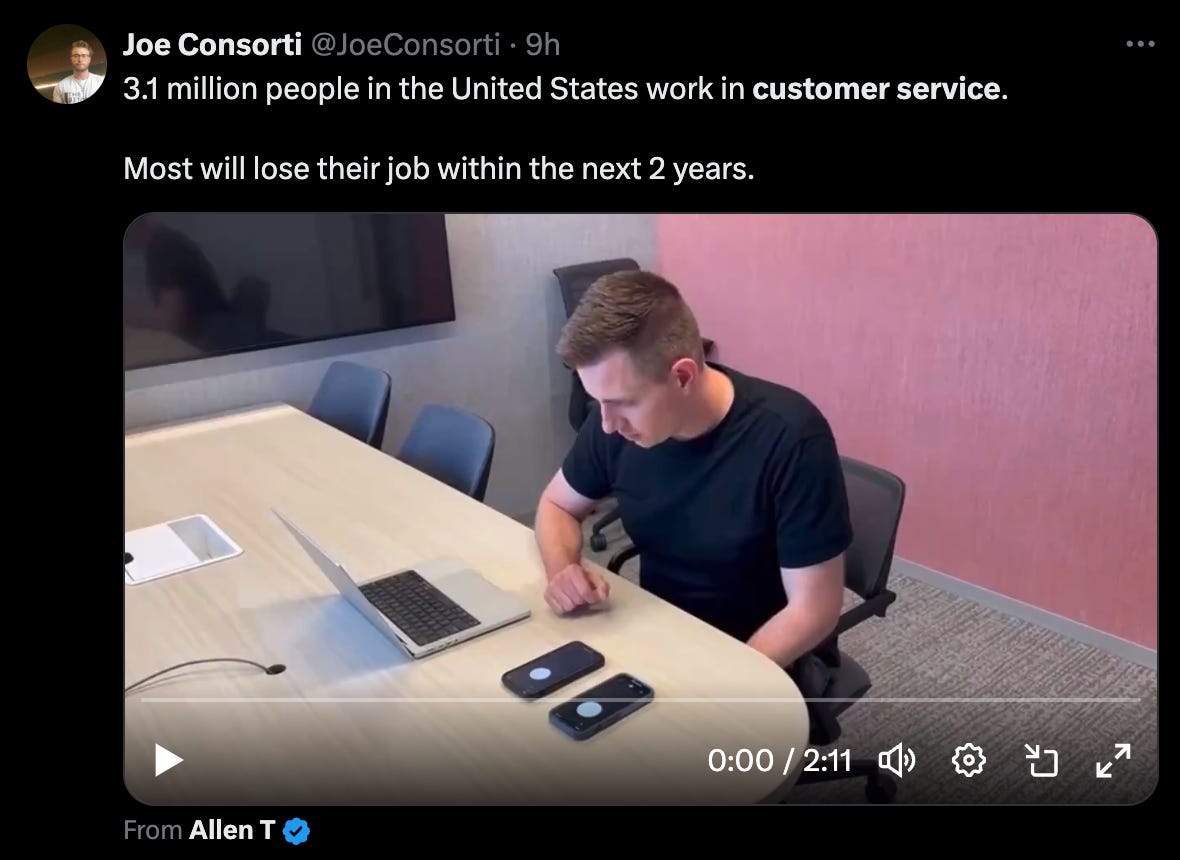 For example, watch this demo of two bots talking to each other in a customer service scenario. Companies are going to save enormous amounts of money. Customers are going to save even more time and headache in the future.