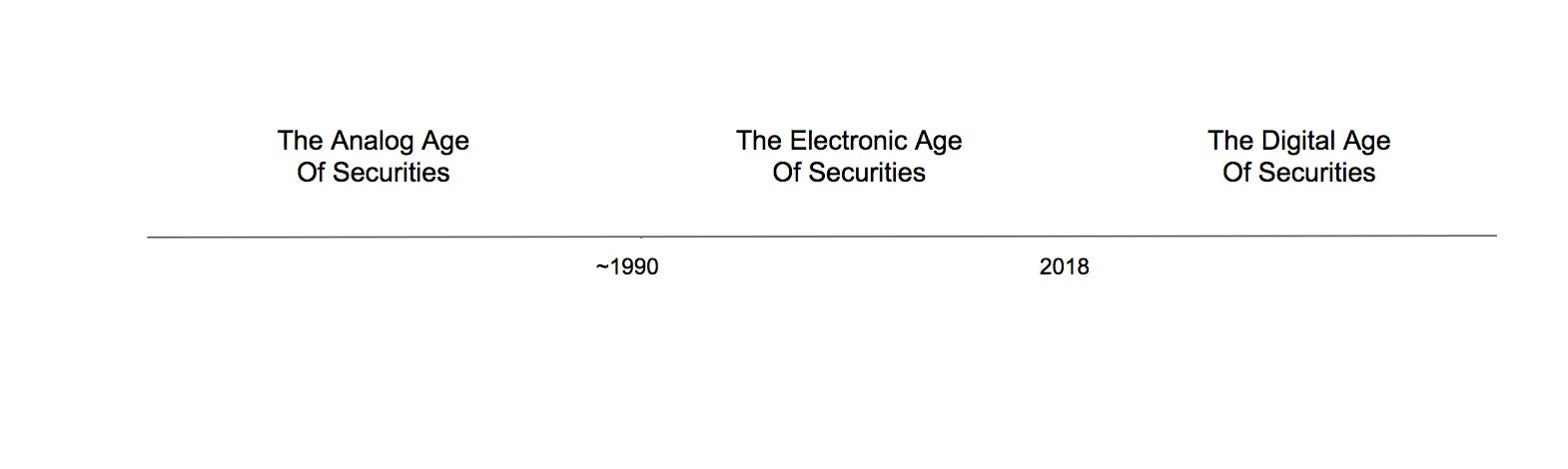 The Analog Age of Securities required physical assets (stock certificates, mortgages, etc). The Electronic Age of Securities required electronic CUSIPs to serve as the representation of the physical assets which remained in centralized custody (ex: DTCC). These electronic CUSIPs move from one centralized database to another and require lengthy/inefficient settlement procedures.