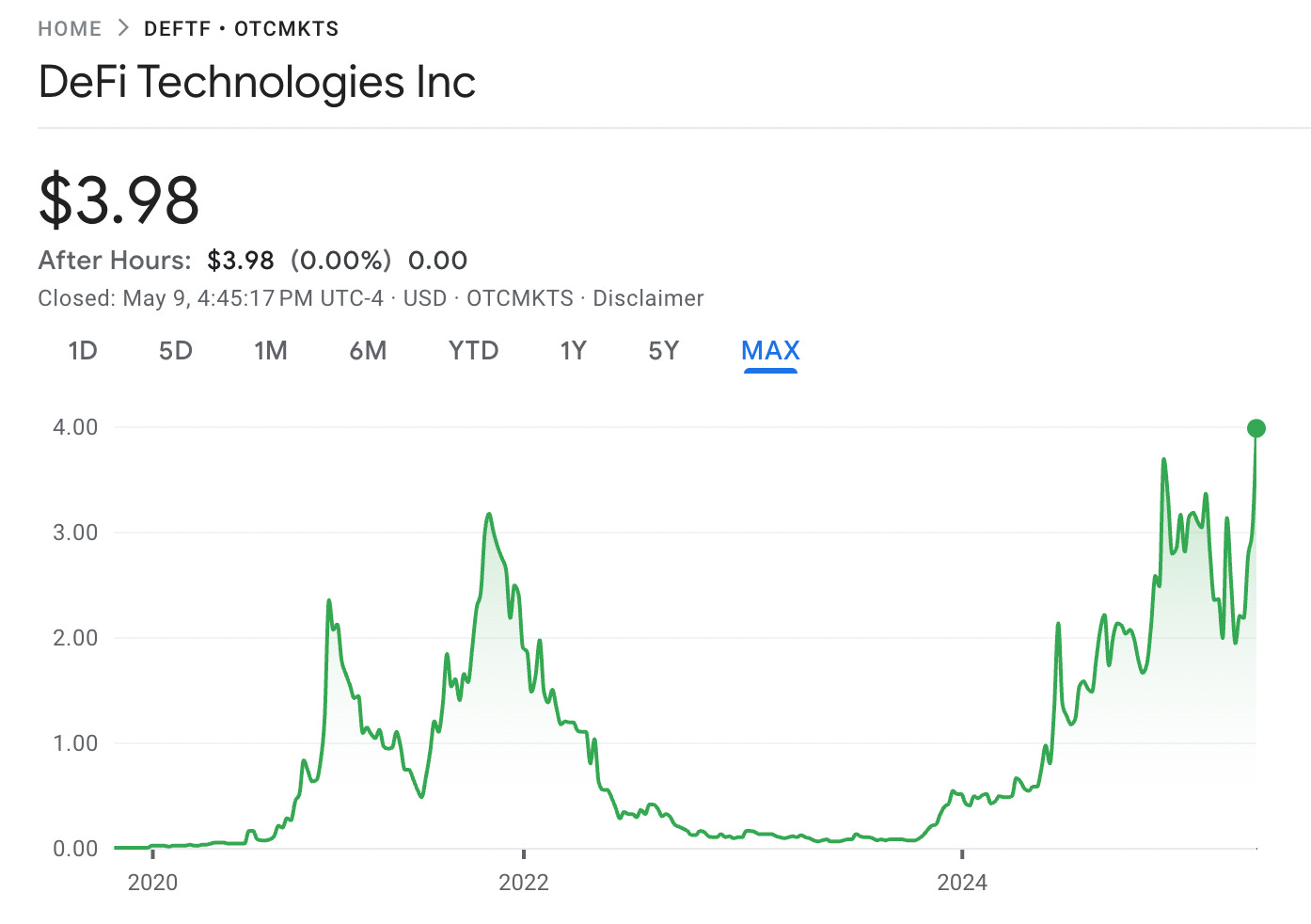 Now, to be clear, I am biased here — I have been an advisor to the company for awhile and I sold a company I started (Reflexivity Research) to DeFi Technologies in January 2024. As part of that deal, my partners and I took 100% of the purchase price in stock because we believed the company was significantly mispriced in the market. Zero cash, all stock. You only do that as an entrepreneur if you have strong conviction on something. I love seeing this progress for the company as a shareholder.