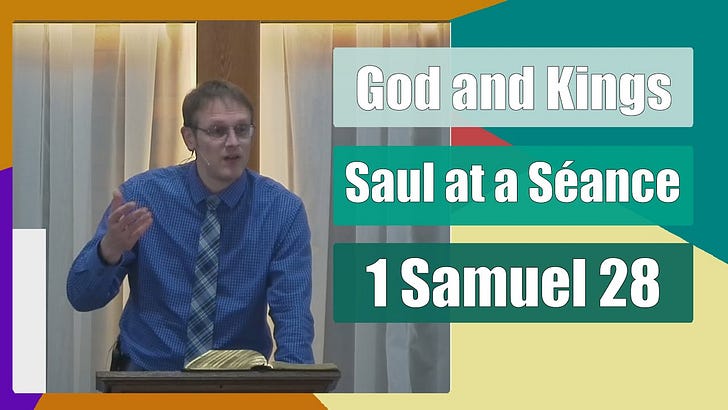 1 Samuel chapter 28 tells of Saul going to a medium to contact the dead, specifically the late prophet Samuel. A scary paranormal story that turns to sheer horror when Samuel gives his message, Saul's downward spiral turns into a crash and burn scenario here. His actions become simply nonsensical in a depiction of a life without faith descending into the horrors of what Jesus Christ experienced on the cross.