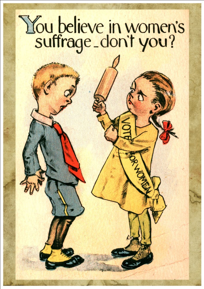 This is a really interesting use of humour in the suffrage campaign. In this episode, we discuss the play, the humour within it and its use in the suffrage movement.