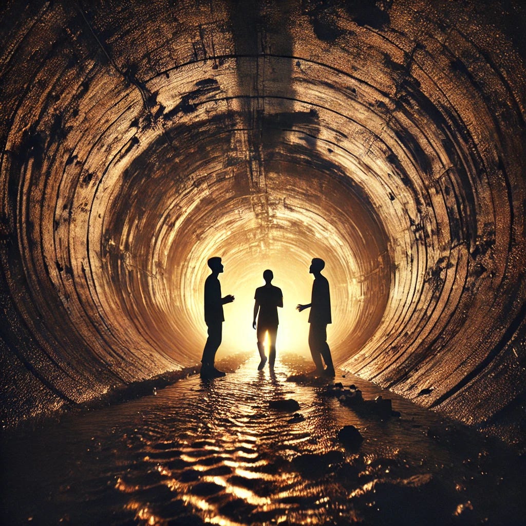 Voices resound on stone, and trumpet through abandoned pipes.