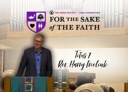 Rev. Harry Frielink of Covenant CRC in Barrie, Ontario gives the third plenary address to attendees of the 2024 Abide Project convention from Titus 2. Throughout the convention, ministers gave addresses from Paul's letter to Titus.