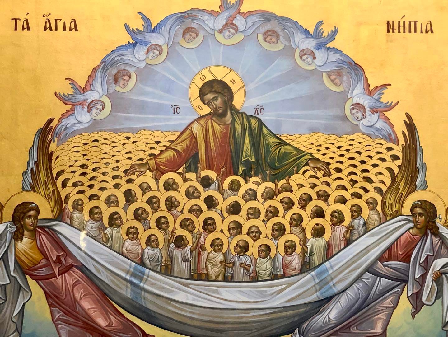 Without question Stephen and the Holy Innocents are in heaven. They are Saints of Holy Church and live in the fullness of the heavenly peace of the Holy Trinity. And yes, Stephen, the Holy Innocents, and all the Saints are singing and singing joyously, as we sang on Christmas Eve and Christmas Day. They join the angelic choir singing “Holy, holy, holy,” with the sound of the voices like many waters, like thunder, like the sound of harpists playing on their harps. They have been redeemed and are praying for us, that, like them, we may be made worthy of the promises of Christ. Worthy of the promises of He Who lives and reigns with the Father, in the unity of the Holy Ghost, ever one God, world without end. Amen.