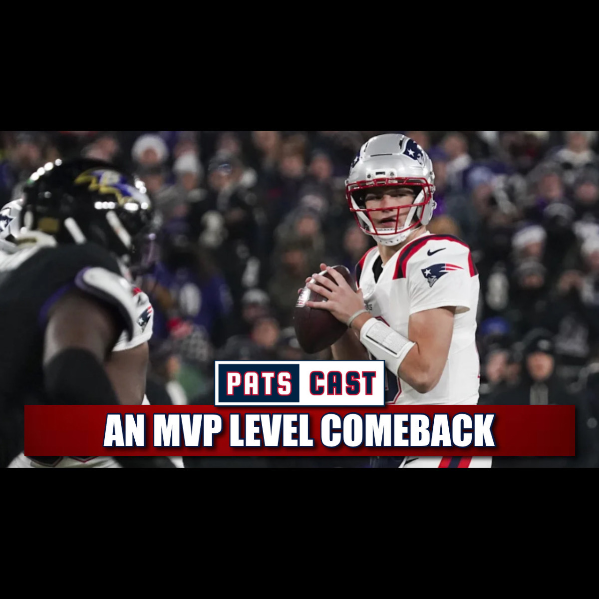 Drake Maye and the New England Patriots battle back against the Baltimore Ravens to clinch their first playoff appearance since 2021. PatsCast breaks down the comeback and what’s ahead.