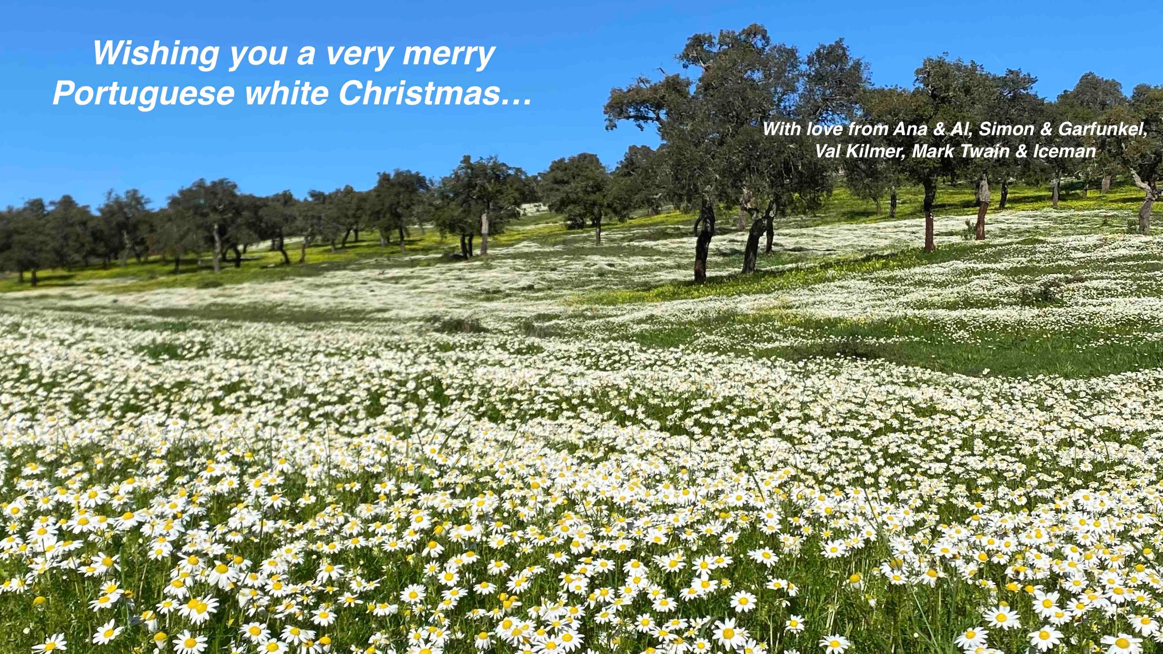 Yes, that’s blue sky; yes, it’s been 17 or 18C (and perhaps a little more) all week; and yes, this is the nearest we’ll get to a white Christmas in the Valley of the Stars.