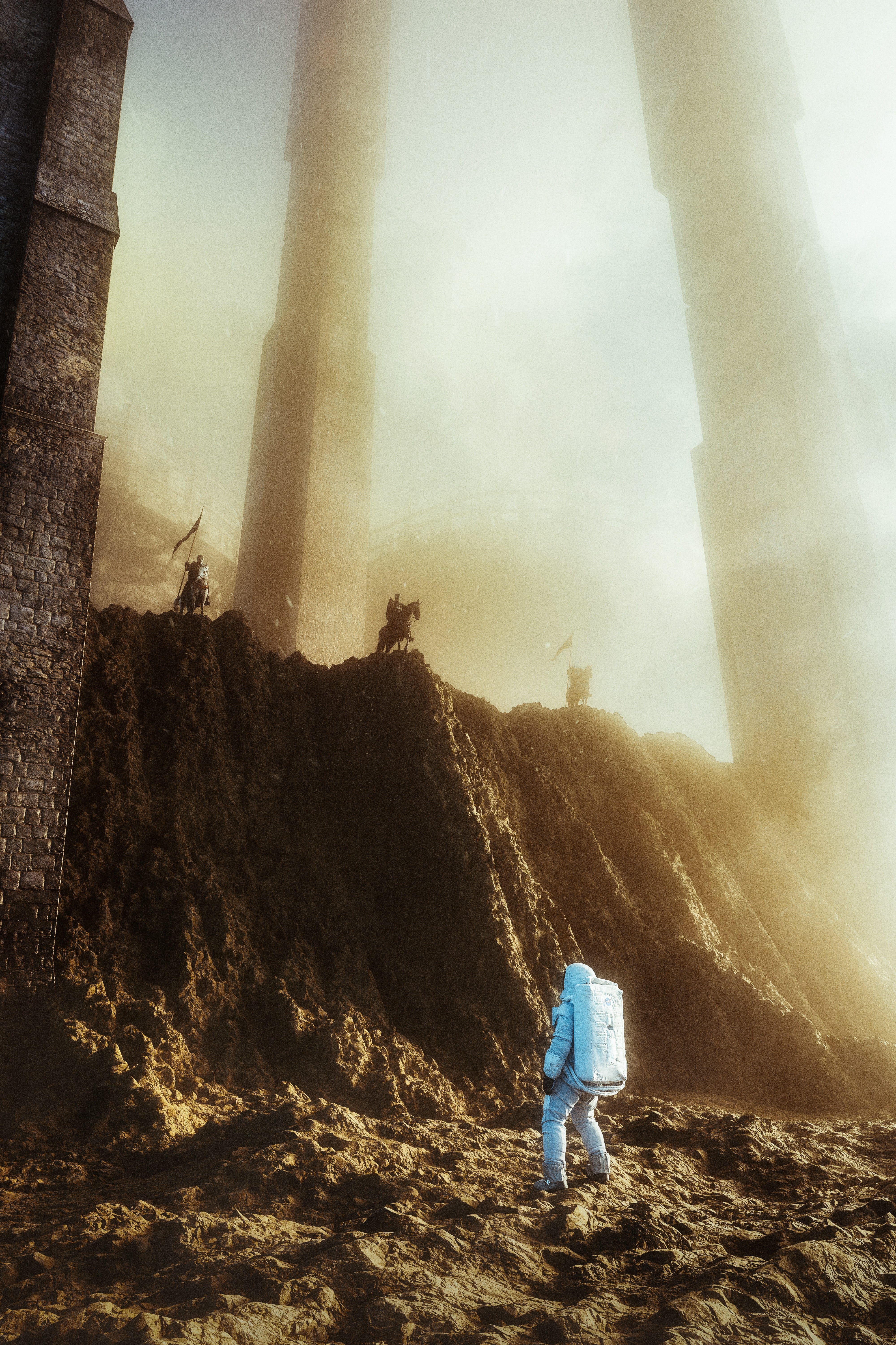I could only hear the sound of my own breathing and the beating of my heart. The batteries in my suit had failed, so the readouts on my wrist-mounted computer were no longer feeding me information about my location or my oxygen supply. I could feel exhaustion creeping in, clutching the back of my mind, dragging my eyelids closed. Footfall after heavy footfall, I plunged forward in search of my rover. Was it just around this next rock formation? Step. Breathe. Step. I laboriously lifted my eyes to the horizon. Were those men on horseback? How did I get here?