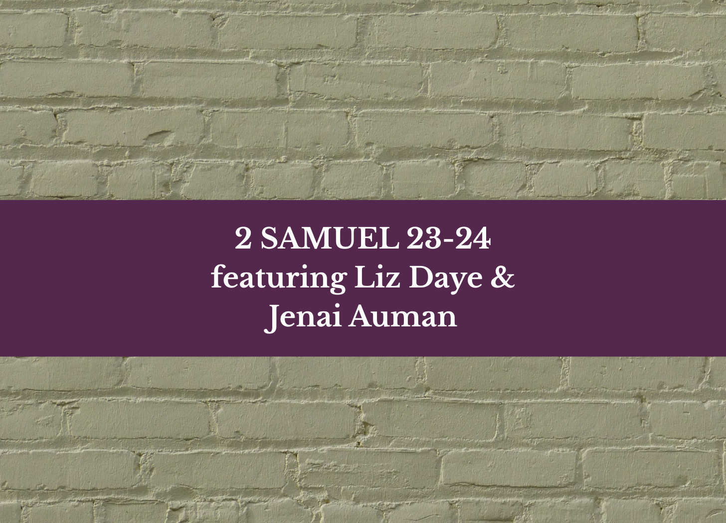 And a shoutout to Jon Pyle, Robert Callahan, and Amanda Waldron for being a part of the journey through books of Samuel!