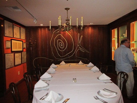 The snail on the wall at Antoine’s designed by John Chase
