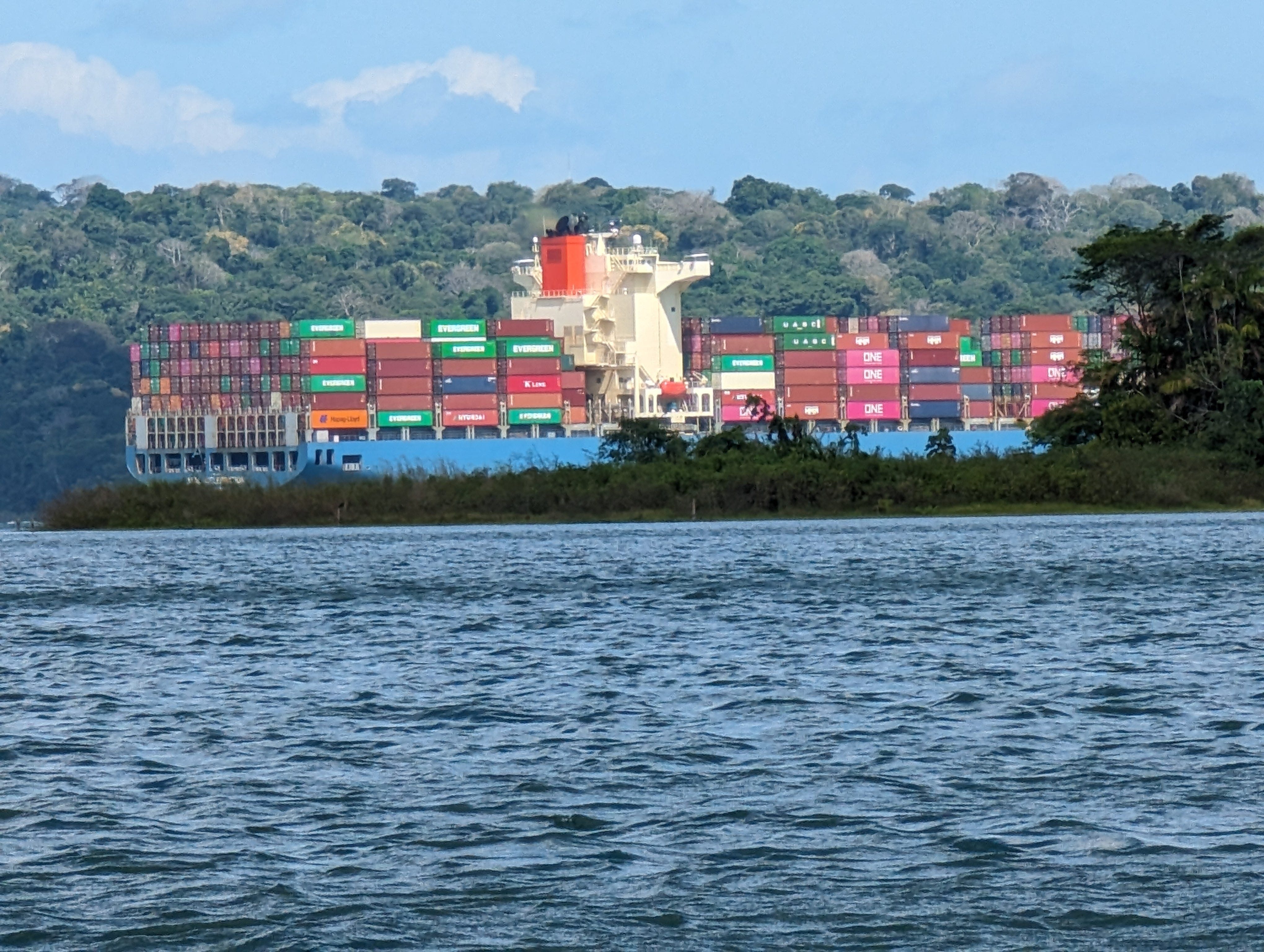 In the Panama Canal, you can get really close to the container ships. These behemoths of the seas hum and vibrate as they churn through the water. Easy to see how one of these could knock down a bridge; they’re massive.