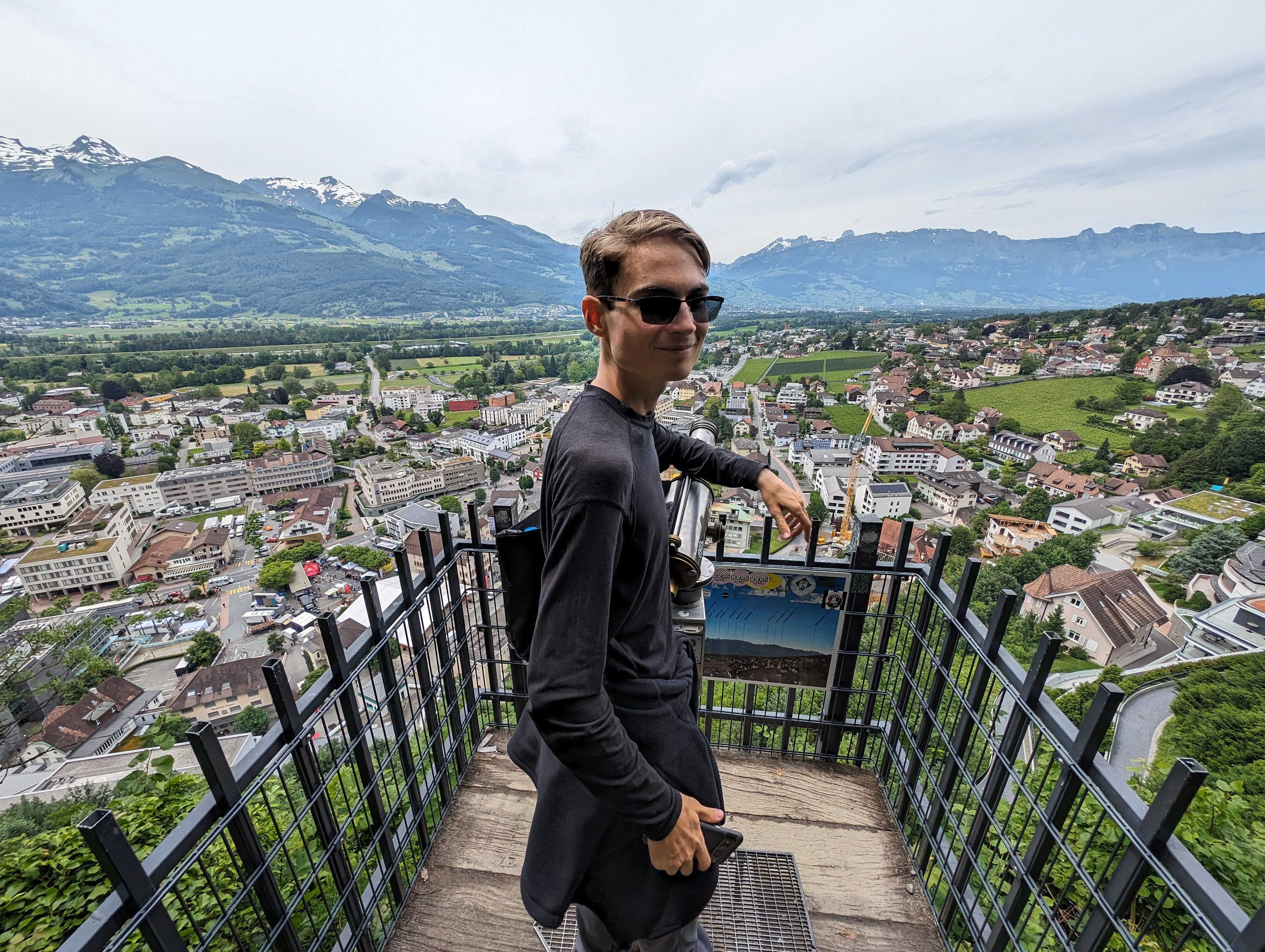 This is Vaduz, Liechtenstein. Those mountains still have snow, which means technically you could go skiing. We have to come back.