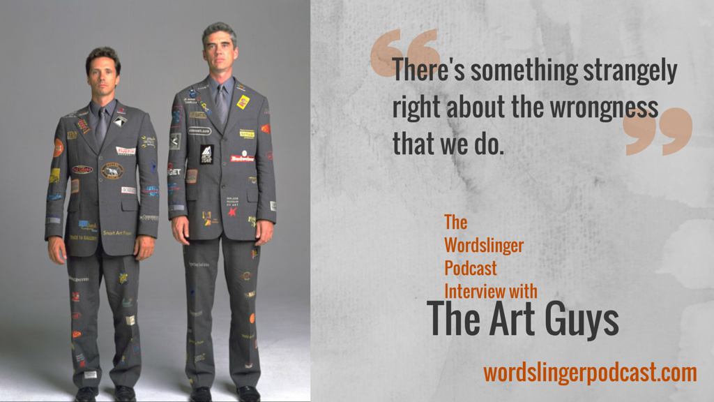 Michael Galbreth and Jack Massing aren’t artists. At least, they don’t quite seem themselves that way. They call themselves artists, and the work they do “art,” mostly because there aren’t many words that fit better. Conceptual marketing? Performance social experimentation? For the most part, these two—the Art Guys—are in the business of pushing buttons in culture to see what happens, and how they can effect it. In this interview (the most edited interview ever for the Wordslinger Podcast), Kevin talks to the Art Guys to figure out what makes them do all those things they do. Learn more about The Art Guys: Their website: theartguys.com Got a question for Kevin and his guests? CALL 281-809-WORD (9673) || Support this show! || Subscribe and start following the Wordslinger Podcast at kevintumlinson.com/podcast Help people find us on iTunes (rate us & review us!) at bit.ly/1zZHmas Help fund us on Patreon! Visit patreon.com/kevintumlinson || Learn more about Kevin Tumlinson and his work, get coaching and consulting, and buy a book or two while you’re on kevintumlinson.com. ||