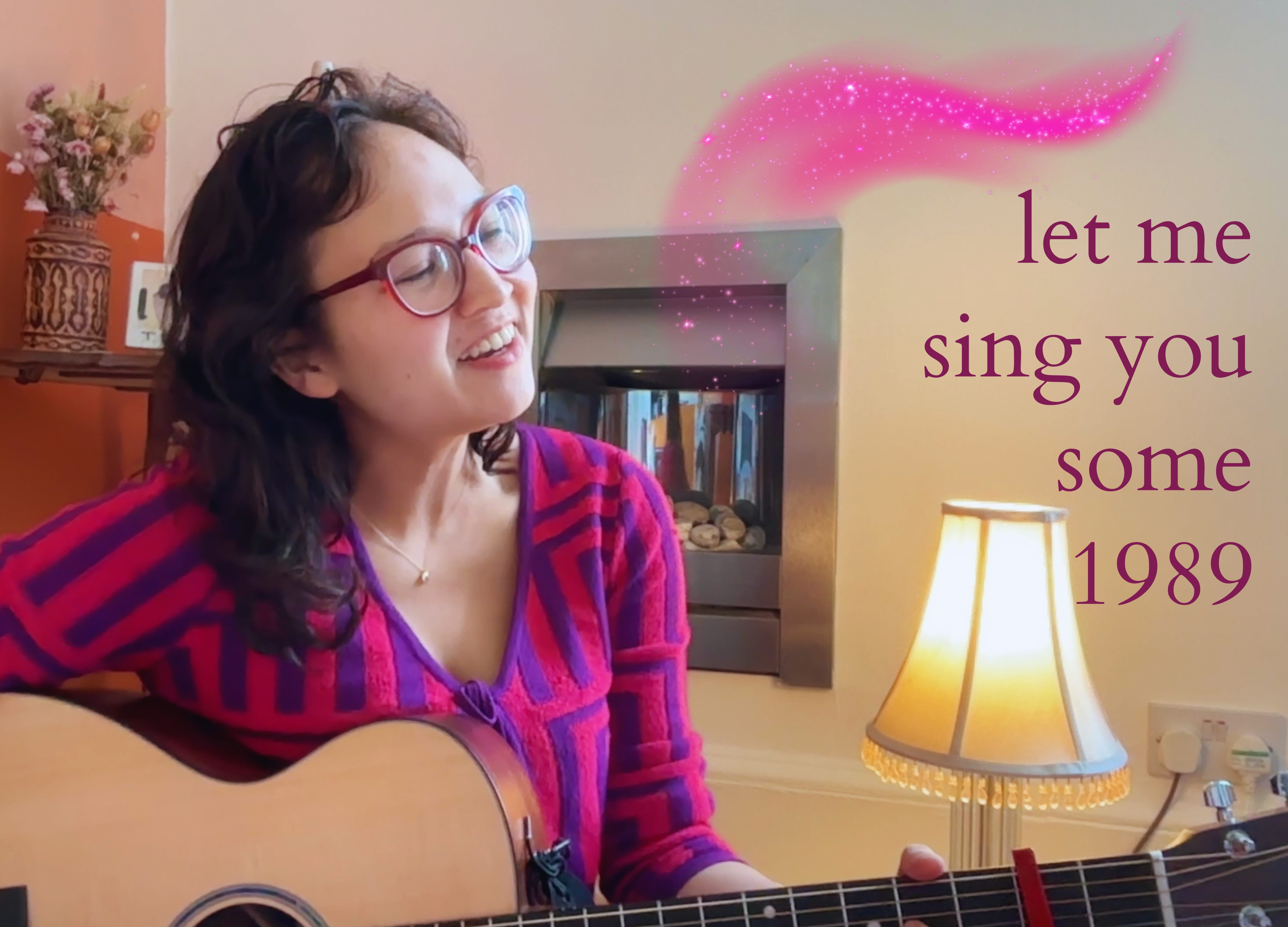I’ve been in rehearsal (on my living room floor) to bring you this concert (from my living room floor). 1989 makes me want to sing along, so for my creative project, I learned the chords to a few favourites.
