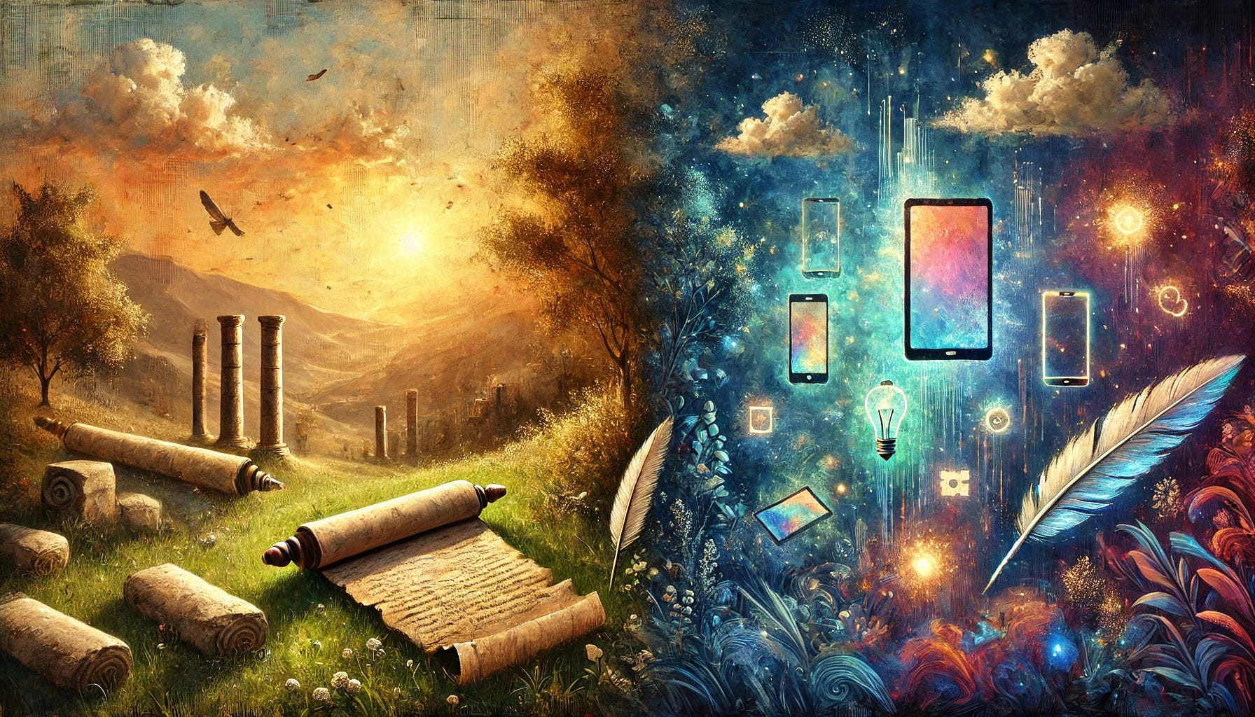 This cognitive crisis mirrors the literary and cultural evolution chronicled in my other musings on written language. In “Jottings on a Journey,” I contrasted the loss of tactile, tangible communication with the sterile, abstract nature of modern digital writing. Just as ancient scribes carved wisdom into clay and stone, modern writers tap away at keyboards, often reducing their musings to curt, disembodied expressions like “lol” or the enigmatic “K.” Written language, once a tool for capturing the richness of human experience, now risks becoming as fleeting as the digital signals that crash upon our screens.
