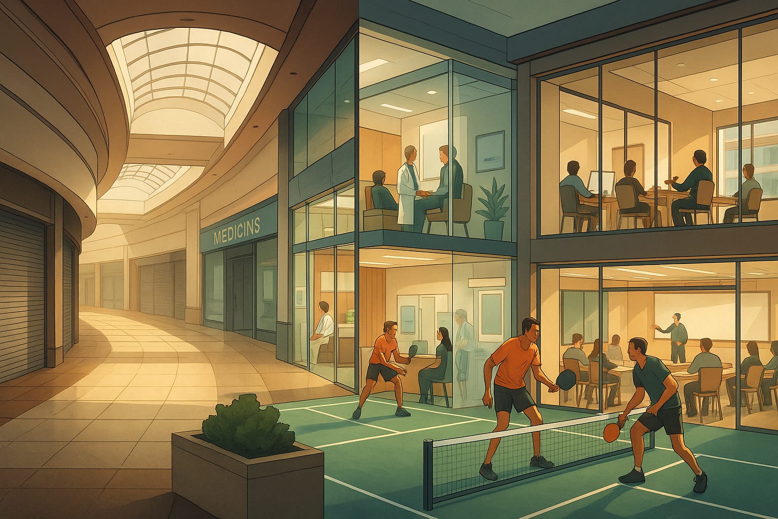 On the surface, mall conversions are real estate deals driven by market forces. Vacancy rates hit record highs, and landlords face mounting carrying costs. Filling empty space with clinics, classrooms, or housing is a way to stabilize income. Yet the trend signals a deeper shift in how Americans use built environments.