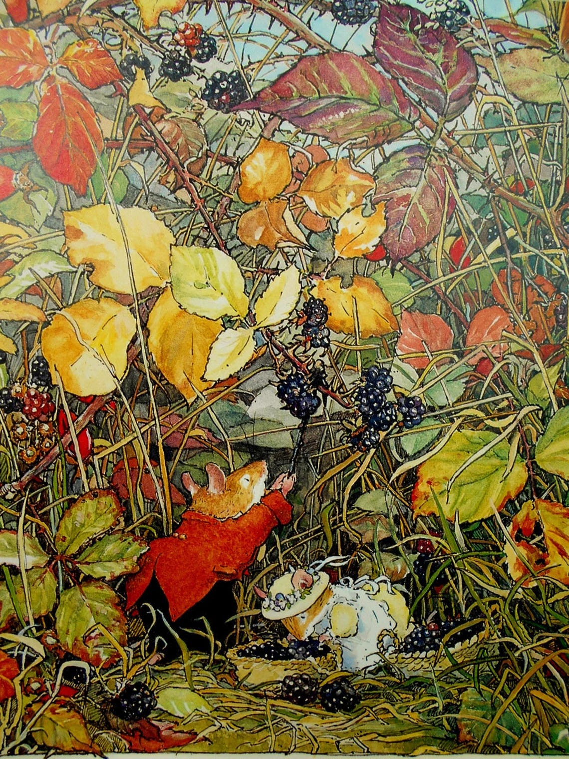 The fields do not hold the only harvest. The edge places are fruitful too. The ditches at the roadside and untenable land for agriculture hold the briars and their good dark fruit: the blackberry. Mention blackberries to anyone and they will likely begin looking into the distance, into their past, and recounting where the best bushes of their childhood were, of what their mother made with them, of the scratches left by thorns, of memories of days that were slower and held less labor, more joy. Does any other fruit hold such idyllic associations? Apples and apple picking, perhaps, but it strikes me that blackberries hold a certain territory in our hearts that no other fruit touches. We may look back fondly on a u-pick blueberry outing or strawberries grown in our greenhouses, but mention blackberries and suddenly legends of brambles the size of houses and famous cobbler recipes come into play. We think too of our own children and their first blackberry foray. We remember the scraped knees, the sticky hands, the baskets overfilled with joyful abandon. No fruit holds a candle to the blackberry’s contribution to our high summer memories.
