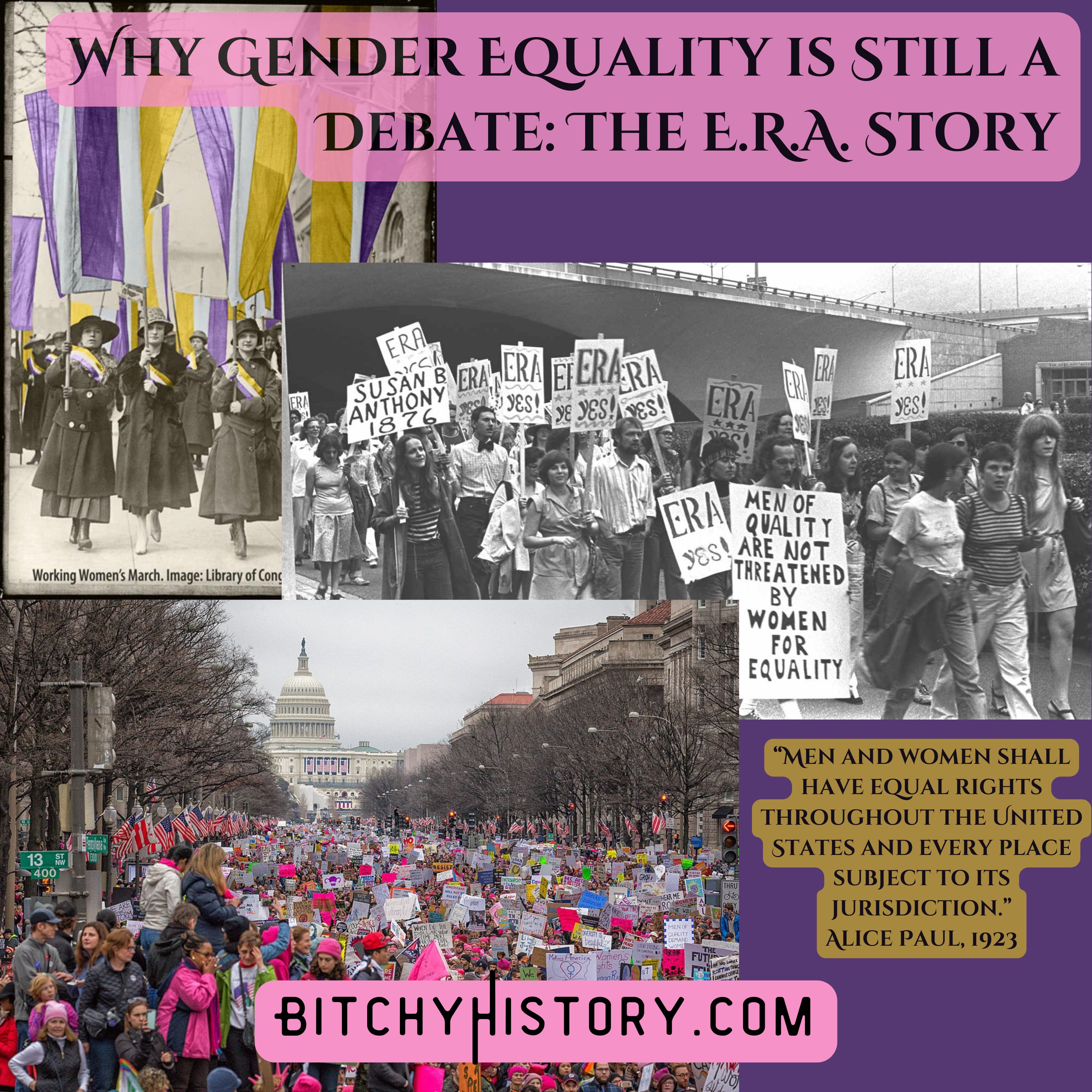 In the latest episode of Bitchy History, we dive into the epic saga of the ERA: its beginnings in the suffragist movement, its near-victory in the 1970s, and the relentless campaign by Phyllis Schlafly to stop it in its tracks. You’ll hear how Schlafly weaponized fear and “family values” to derail the ERA and why her influence still looms large in today’s debates over gender equality.