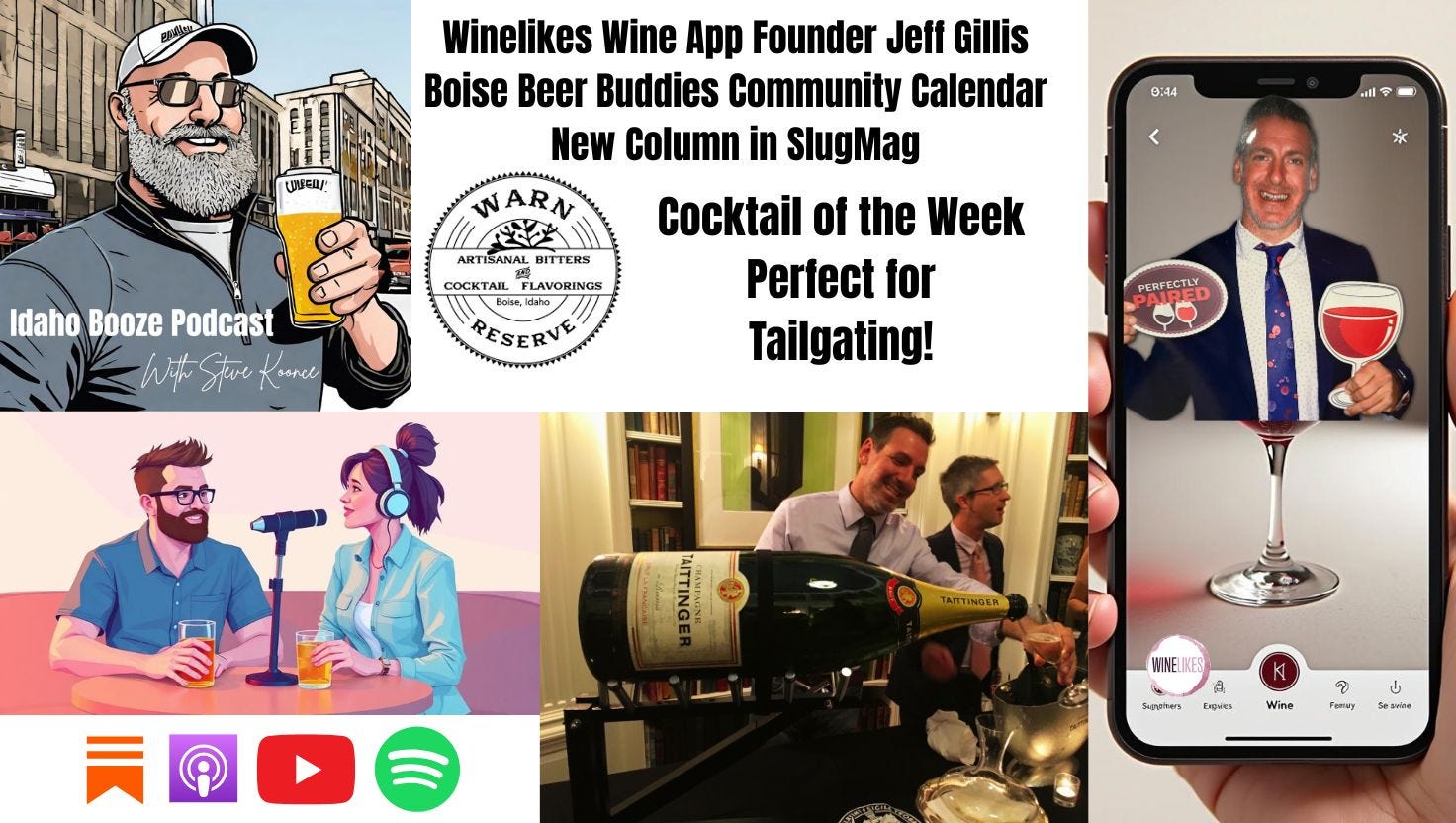 Wordle meets Wine on today’s episode of the Idaho Booze Podcast as I welcome Jeff Gillis onto the show to talk about his app, Winelikes. This app has everything: games, social media, and, of course, lots of wine facts and a check-in feature to keep track of those tannins. We also have a great time talking about potato chip pairings and the intricacies of being a sommelier. All that plus we go over the Boise Beer Buddies Community Calendar and a fun Warn Reserve batch cocktail perfect for your next tailgate.