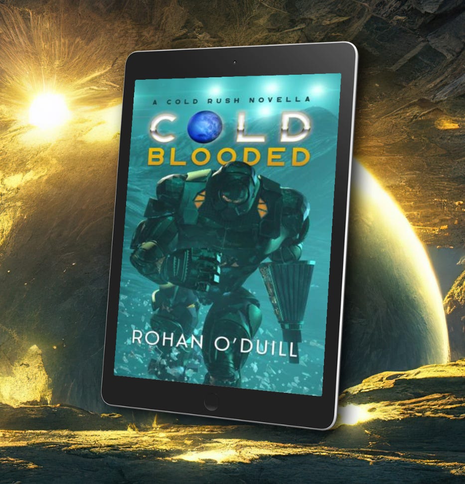 Cold Blooded by Rohan O'Duill is a gripping tale of war, survival, and corporate dominion in the depths of space. The narrative follows Mint, a battle-hardened Marine facing crucial moral decisions when summoned back to combat, while teenage Frida struggles for survival aboard her father's pirate vessel. O'Duill's masterful storytelling weaves together intense military science fiction with profound character dilemmas, creating a raw and compelling narrative that exposes the dark reality of corporate greed and systemic corruption. The world-building creates a believable future where corporate interests have superseded traditional power structures, leading to complex moral territories that the characters must navigate.Author Rohan O'Duill's cast of characters feels authentic and multifaceted, particularly in Mint's internal struggles as he is thrown back into dangerous combat. The visceral descriptions of battle and space warfare create a sense of immediate danger that had me holding my breath through many scenes. The attention to detail in both the military aspects and the human elements creates a rich tapestry that draws readers into this complex and morally ambiguous universe with totally immersive detail. O'Duill's interesting critique of corporate power structures is especially relevant to our times but never overwhelms the central narrative. I always felt like I was at the heart of the action, glancing around nervously for the next sudden twist. The pacing maintains this constant tension without ever resorting to melodrama, driving the story forward through both action sequences and quieter character moments that are emotionally grounded and realistic. I loved the relationship dynamics between Mint, Frida, and those they meet along the way who shape and challenge their beliefs. Overall, Cold Blooded is a powerful example of military science fiction that succeeds both as an action-packed adventure and a thoughtful critique of power and corruption, and I would definitely recommend it.