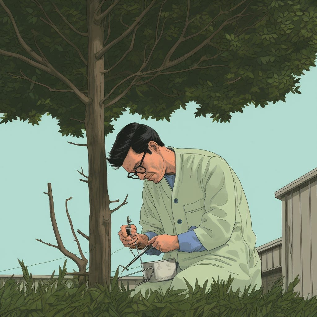 Over the next few weeks, the stories stacked up fast. My aunt Dorothy mailed her entire retirement fund to a Nigerian prince she met online. My neighbor Carl sold his house and blew the money trying to invent a new color. The outbreak was spreading faster than we could believe. No one knew how it was transmitted. You could be having a pleasant chat with someone and the next day they'd be walking their goldfish on a leash or trying to eat rocks because "they looked tasty." There seemed to be no cure on the horizon either.