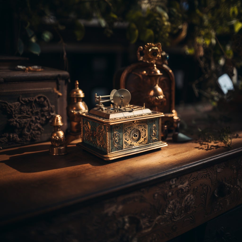 James closed his eyes, concentrating on the vintage song. He saw himself as a young boy, playing on the floor as a music box sat on a nearby shelf, this exact tune echoing. The ballerina inside the box endlessly danced beside his wooden toy trains and building blocks. He now realized this was the music box from his youth, the one his mother would wind up to lull him to sleep at night. Why had he forgotten about it all these years?