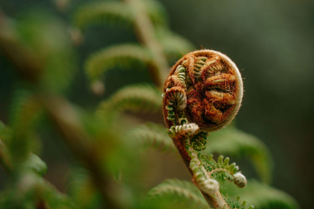 The fiddle ferns seemed eager to converse at Ballymaloe, their shoulders smiling atop their green, springtime spines; and a cream-colored nautilus curled perfectly in my palm on a windswept beach in Ardmore. An acupuncturist friend explained how Chi travels through the body's meridians in spiral patterns. Spirals began opening in the intervals between musical harmonies and along the wooden banister in my father’s home. And then, in meditation — massive, breathing spirals emanated like forest vines behind my eyes.