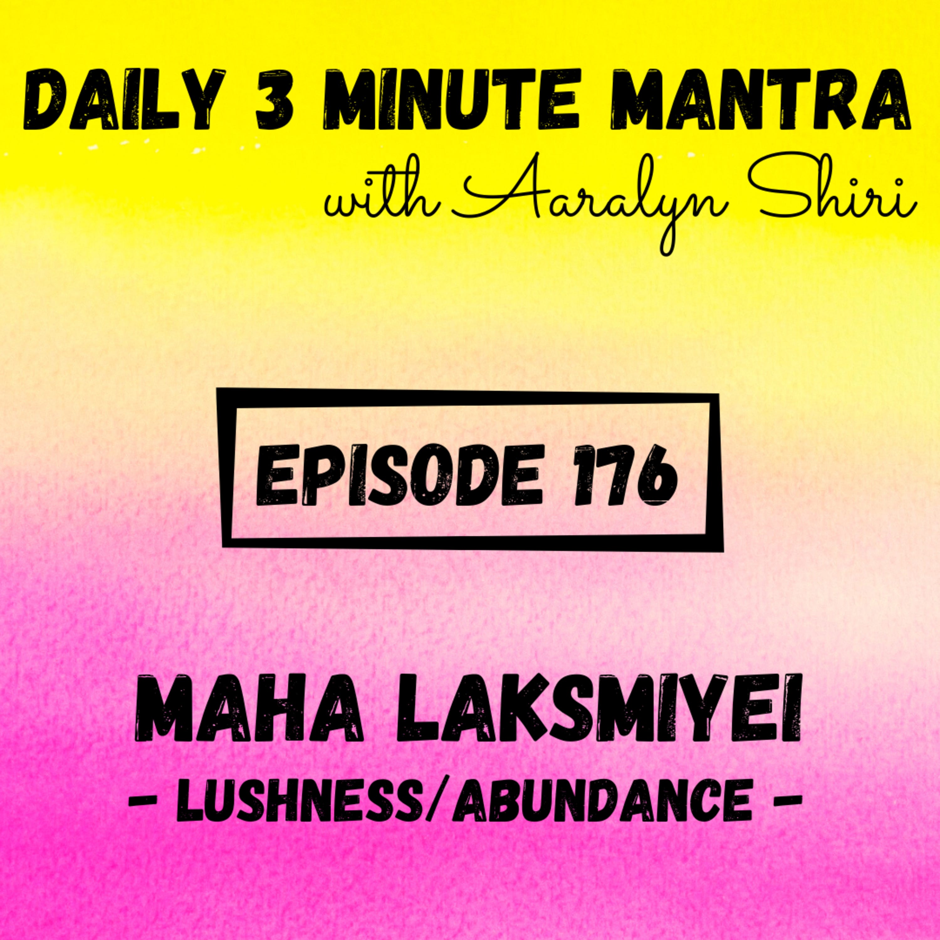 Welcome to Episode 176 of the Daily 3 Minute Mantra Podcast with Aaralyn Shiri! Today's mantra is Maha Laksmiyei.