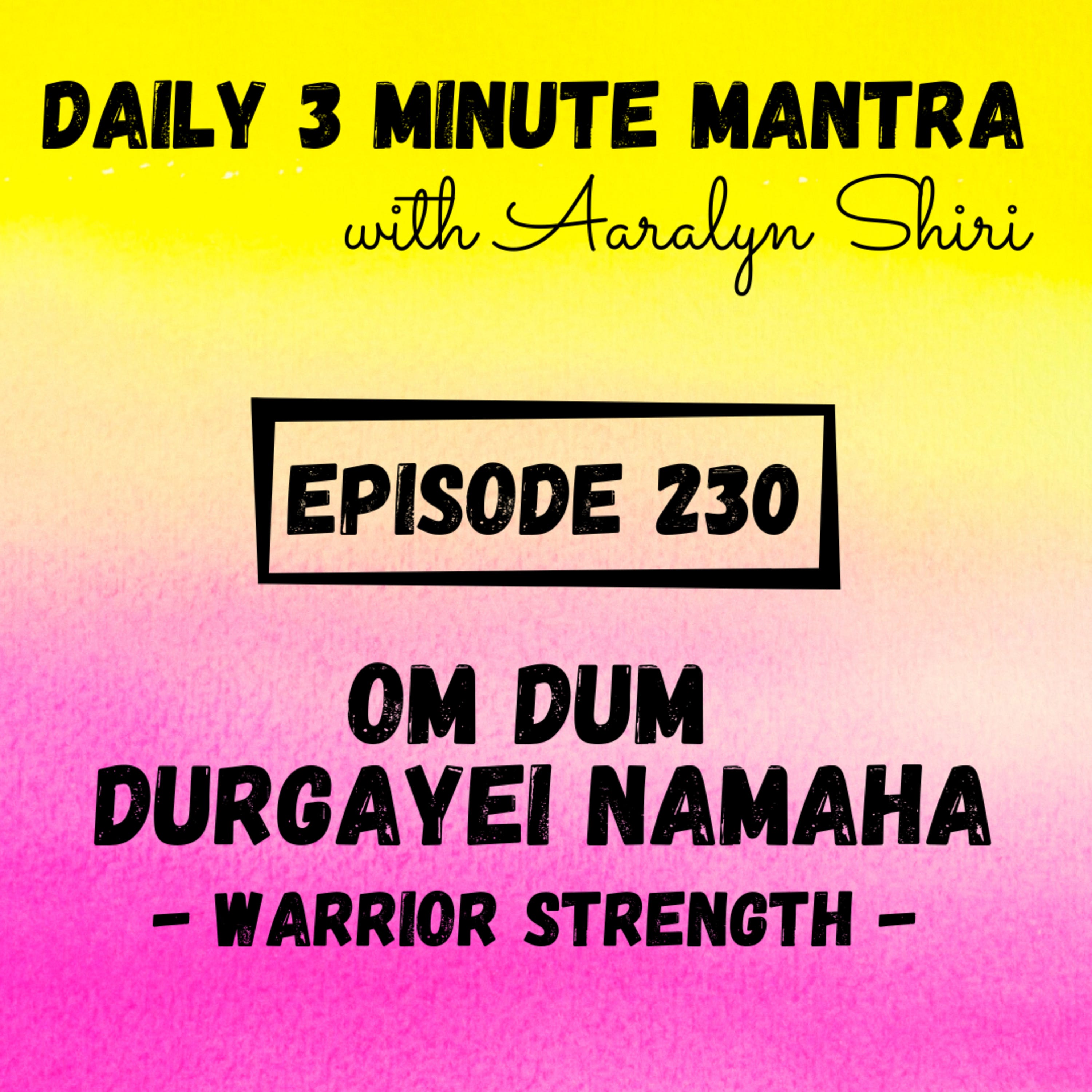 Welcome to Episode 230 of the Daily 3 Minute Mantra Podcast with Aaralyn Shiri! Today's mantra is Om Dum Durgayei Namah.