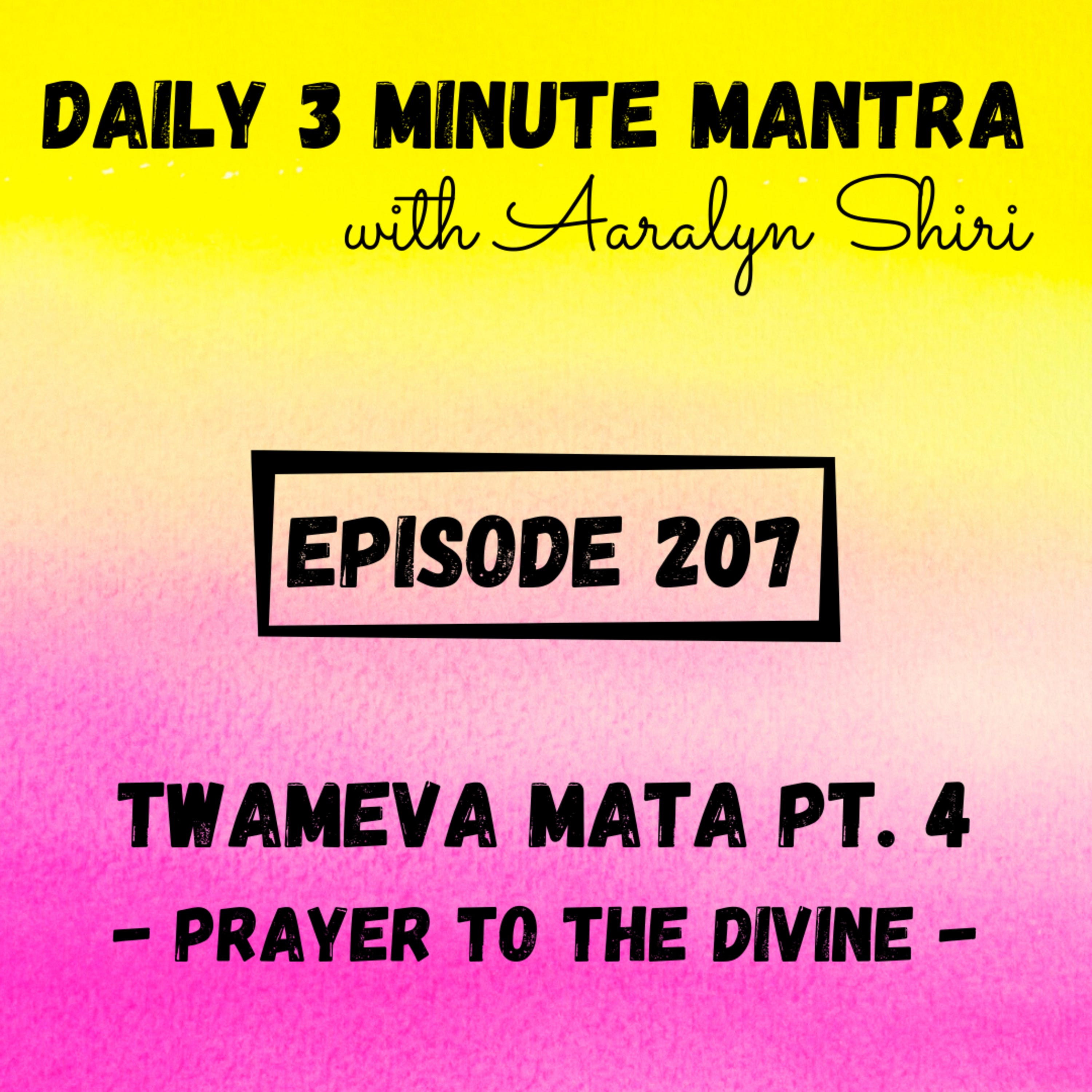 Welcome to Episode 207 of the Daily 3 Minute Mantra Podcast with Aaralyn Shiri! Today's mantra is part 4 of a Sanskrit prayer to the divine called "Twameva."