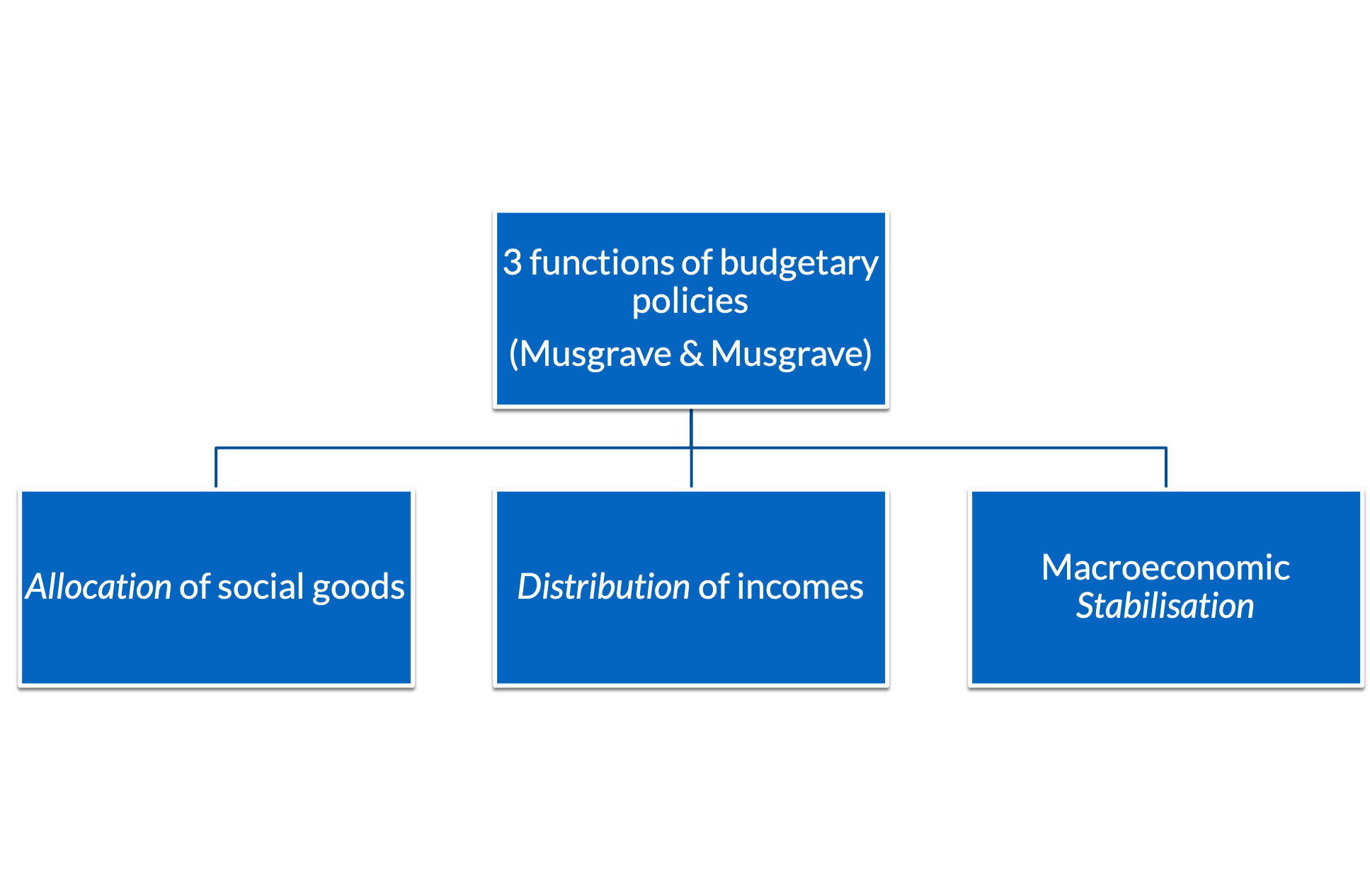 From a public finance perspective, the three main functions of the State are allocation, distribution, and stabilisation.