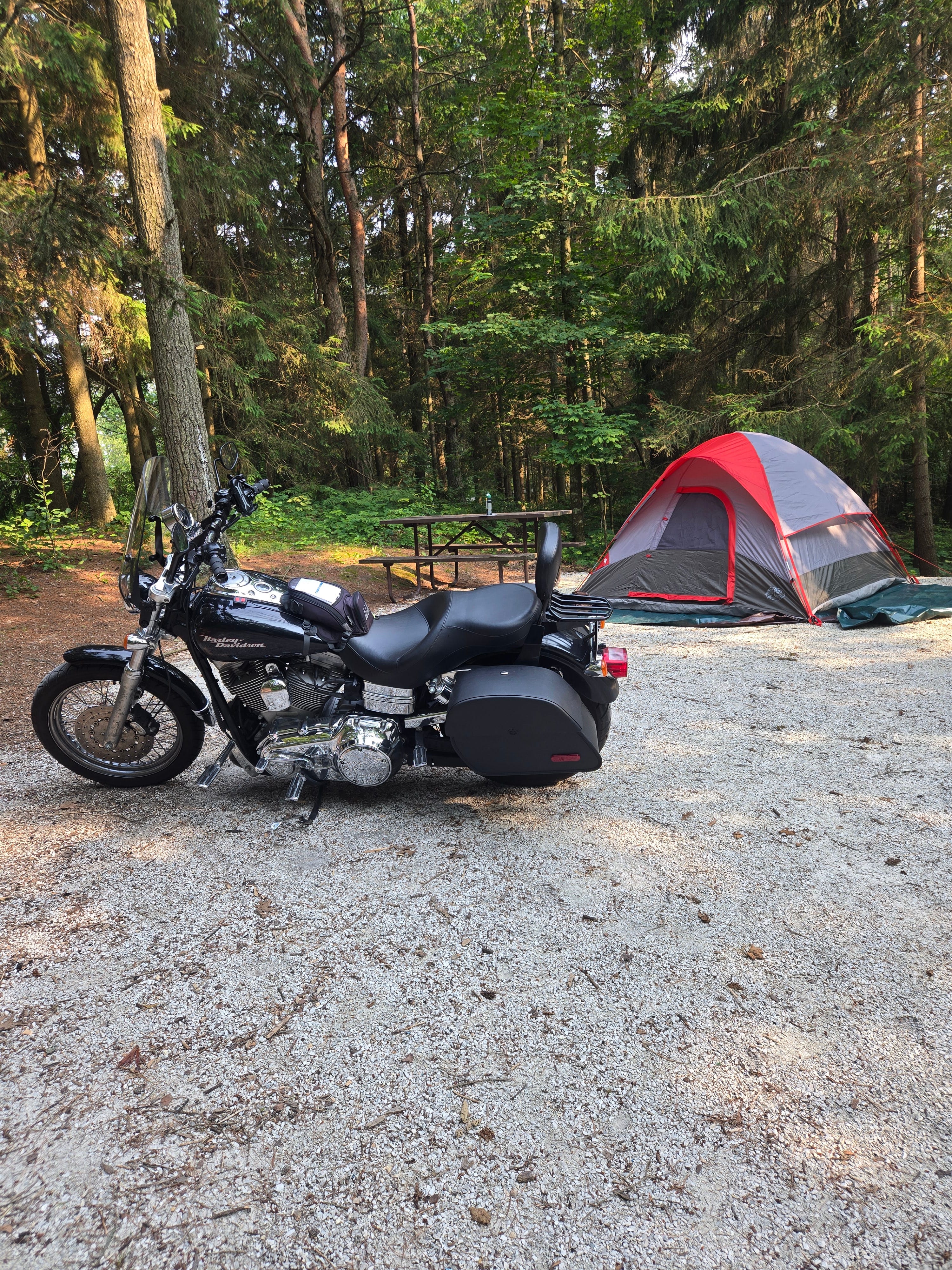 I rode to my campsite just north of Two Rivers along the lake. I had practiced setting up the tent a couple times prior to today, but it still took waaay too long to get everything in order. Of course, I really didn’t have anything else to do. I also didn’t bring any books along, only this journal I’m currently writing in. The site was on gravel. Yes, gravel. The bane of motorcycles. Luckily nothing happened with my motorcycle, and I was so glad I brought a yoga mat along as my mattress. It worked just fine.